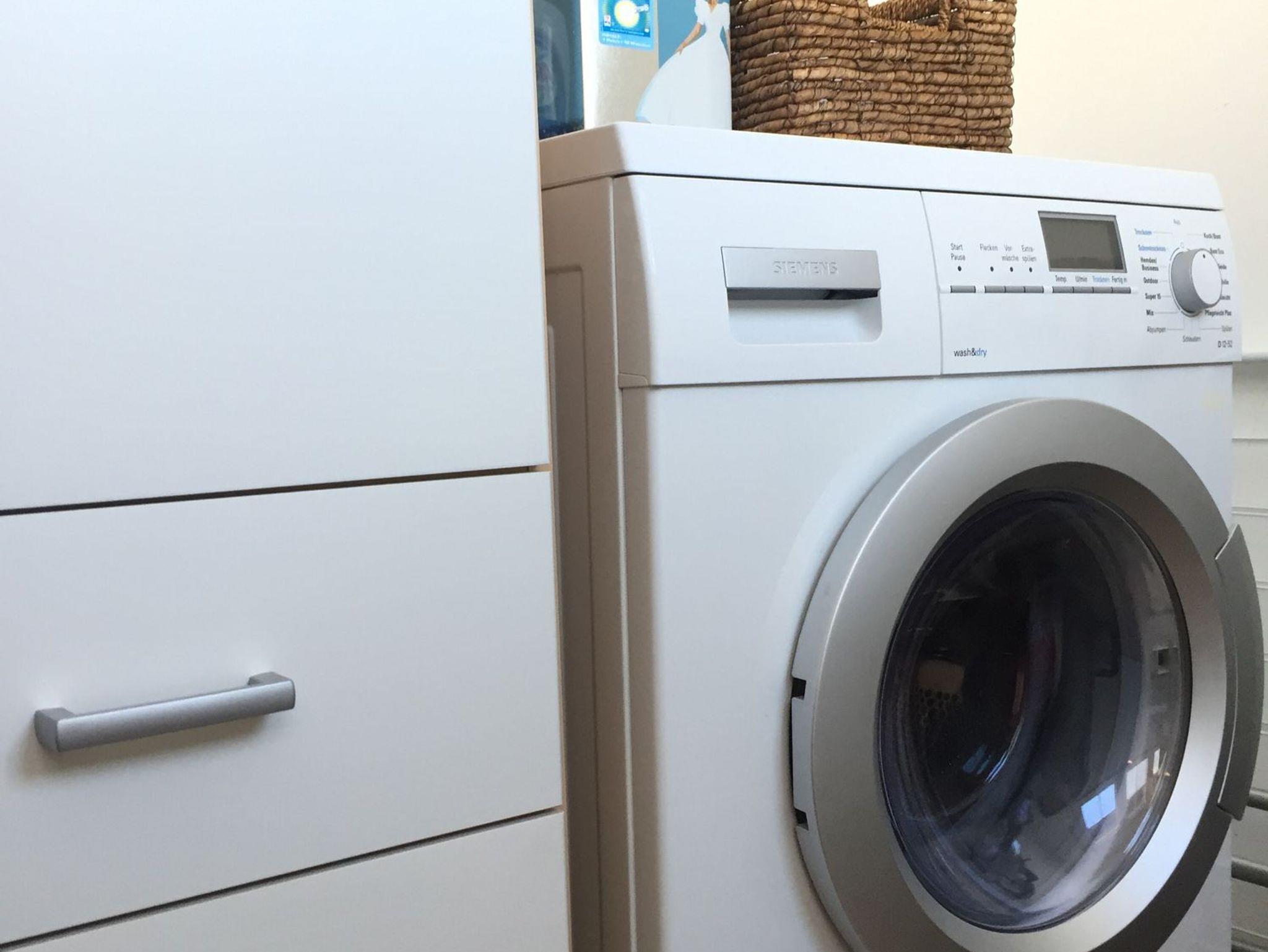 Waschmaschine mit integriertem Trockner im Hauswirtschaftsraum