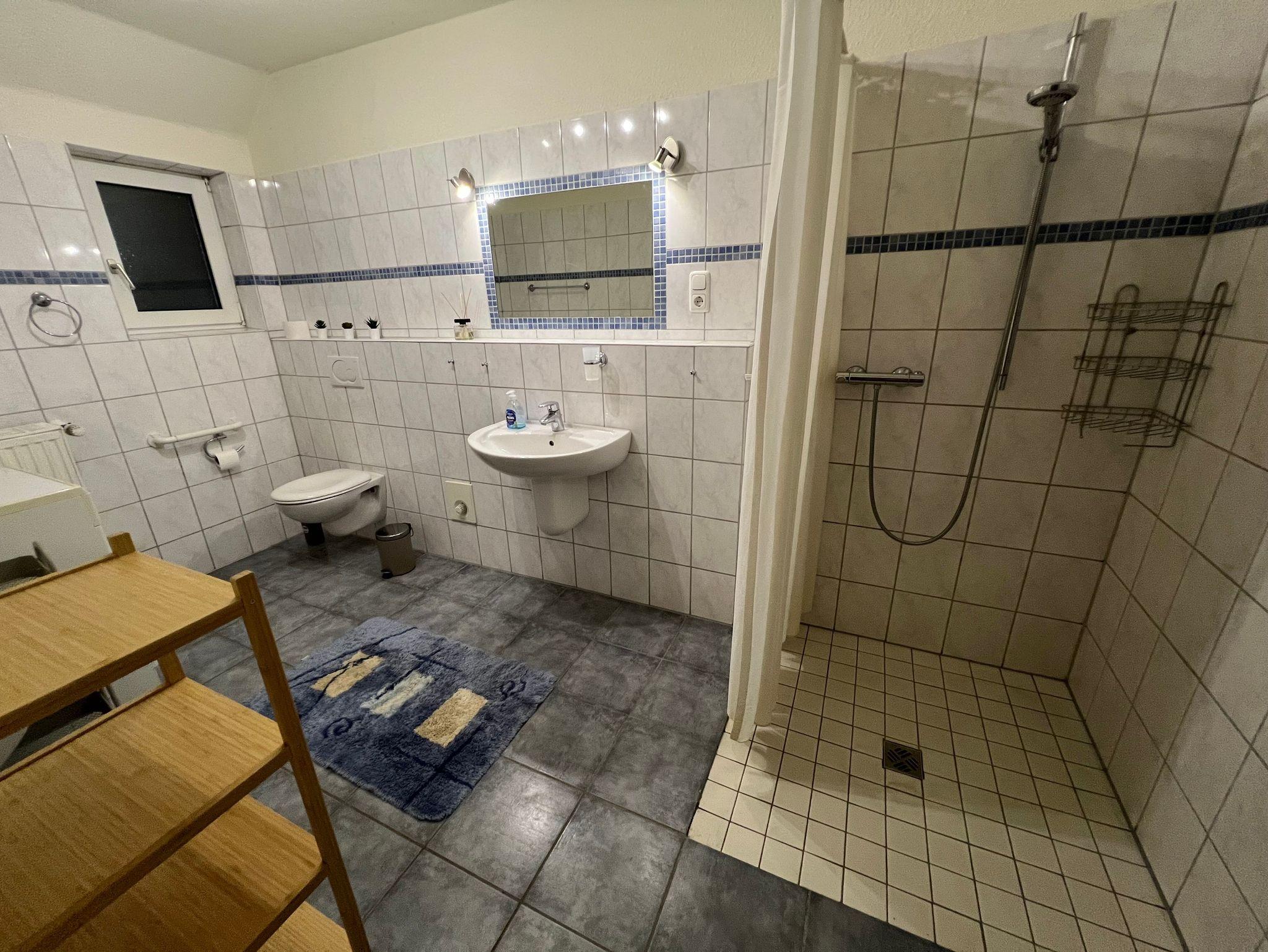 Küche, ein modernes Badezimmer mit Dusche und Waschmaschine sowie ein eigener