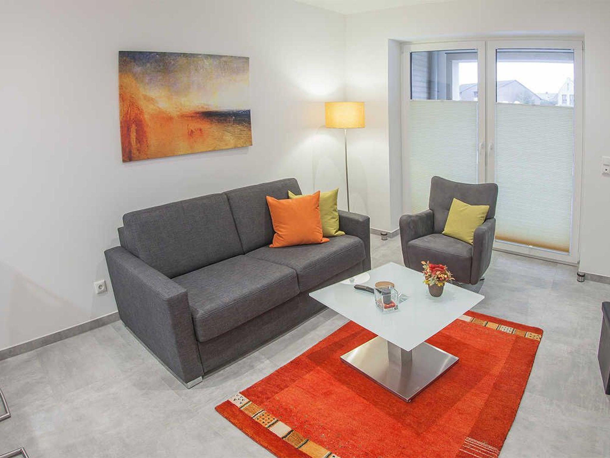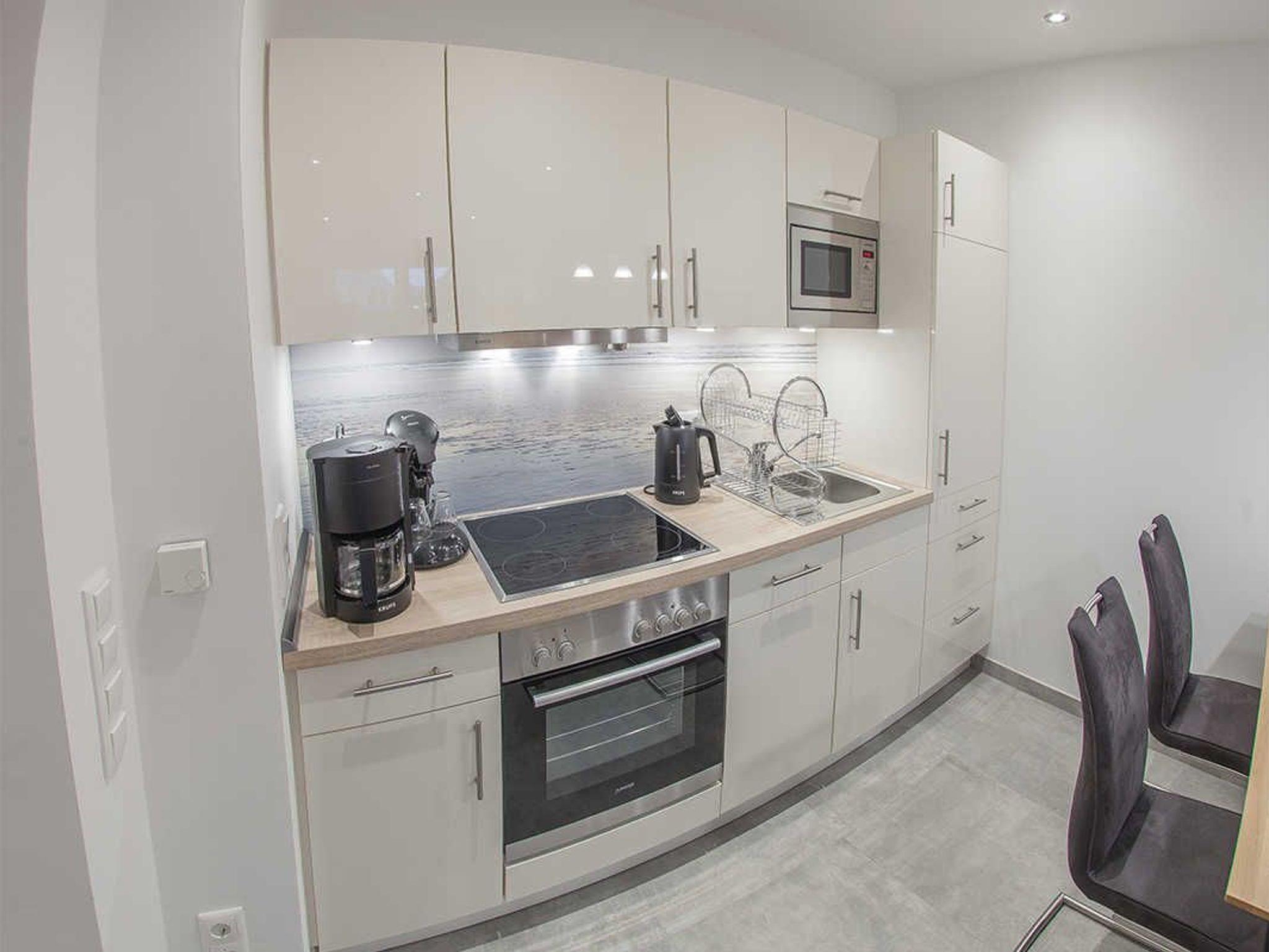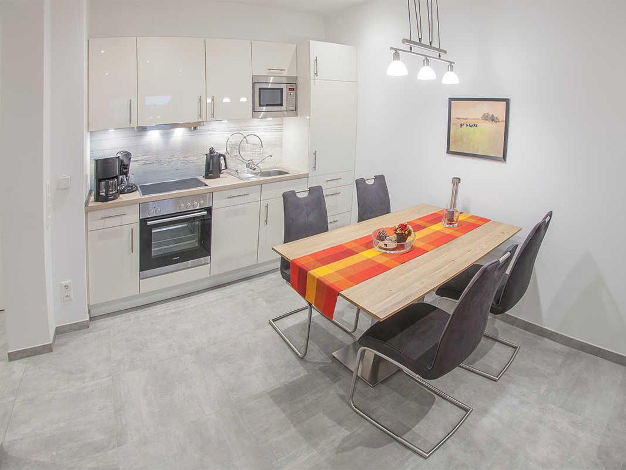 Genießen Sie den Komfort in der hochwertig und modern eingerichteten Friesland Oase: Im kombinierten Wohn- und Essbereich finden Sie eine voll ausgestattete und mit neuesten Geräten eingerichtete Küchenzeile. Der klar gehaltene Stil der gesamten Einrichtung wird durch Accessoires in heiteren Farben ergänzt. Sowohl im Wohnbereich als auch im Schlafzimmer ist ein Flat-TV vorhanden. Die überdachte Westterrasse ist von beiden Räumen aus zugänglich. Das helle Bad mit Fenster, Internet-Radio und begehbarer Sommerregendusche kann vom Schlafzimmer und vom Eingangsbereich aus betreten werden.
