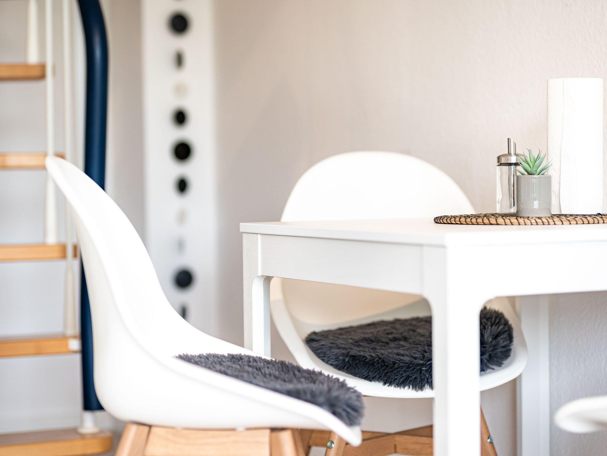 Diese schicke sanierte Oberwohnung mit Stellplatz vor dem Haus in der Humenser Str. 4 garantiert einen entschleunigten Urlaub. Vom Dielenbereich mit Garderobe gelangen Sie in der ersten Ebene ins schicke Wohnzimmer mit vorgelagertem Essplatz und dem ersten Schlafraum mit Doppelbett. Sie genießen dort Blick auf den möblierten Balkon mit Sonnenschutz. Die separat gelegenen Küchenzeile ist klein, aber fein, und für die Zielgruppe gedacht, die eher weniger Kochambitionen hat.