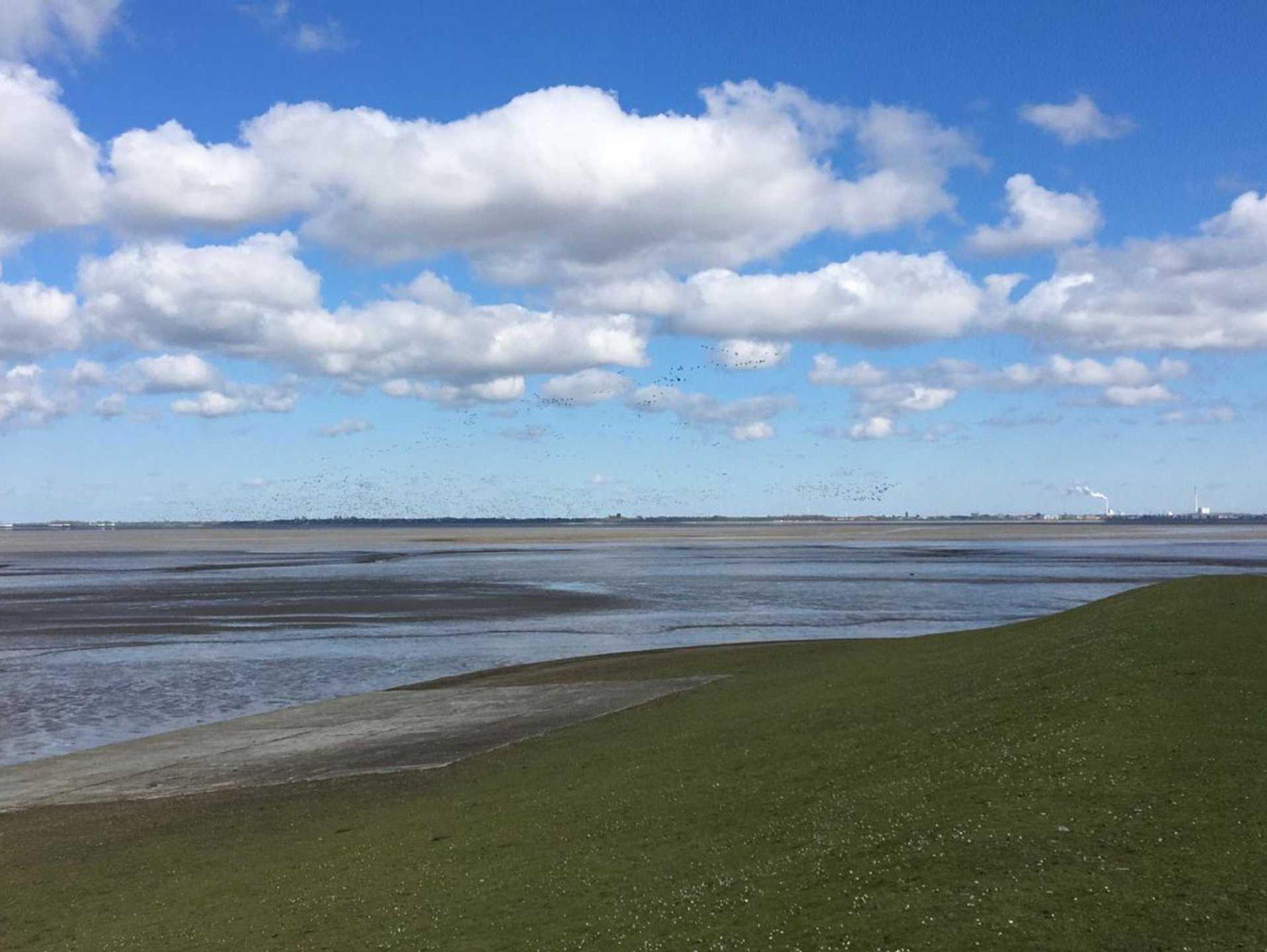 Unser Haus:Übernachten Sie in unserer ca. 85 qm großen hochwertigen rauch- und haustierfreien Ferienwohnung im Gästehaus An Bord. In unserer fast einmaligen Lage vor der Deichlinie sind Sie nach wenigen Metern am Dangaster Strand. Genießen Sie den Blick auf das Meer und erleben Sie den Lauf der Gezeiten.