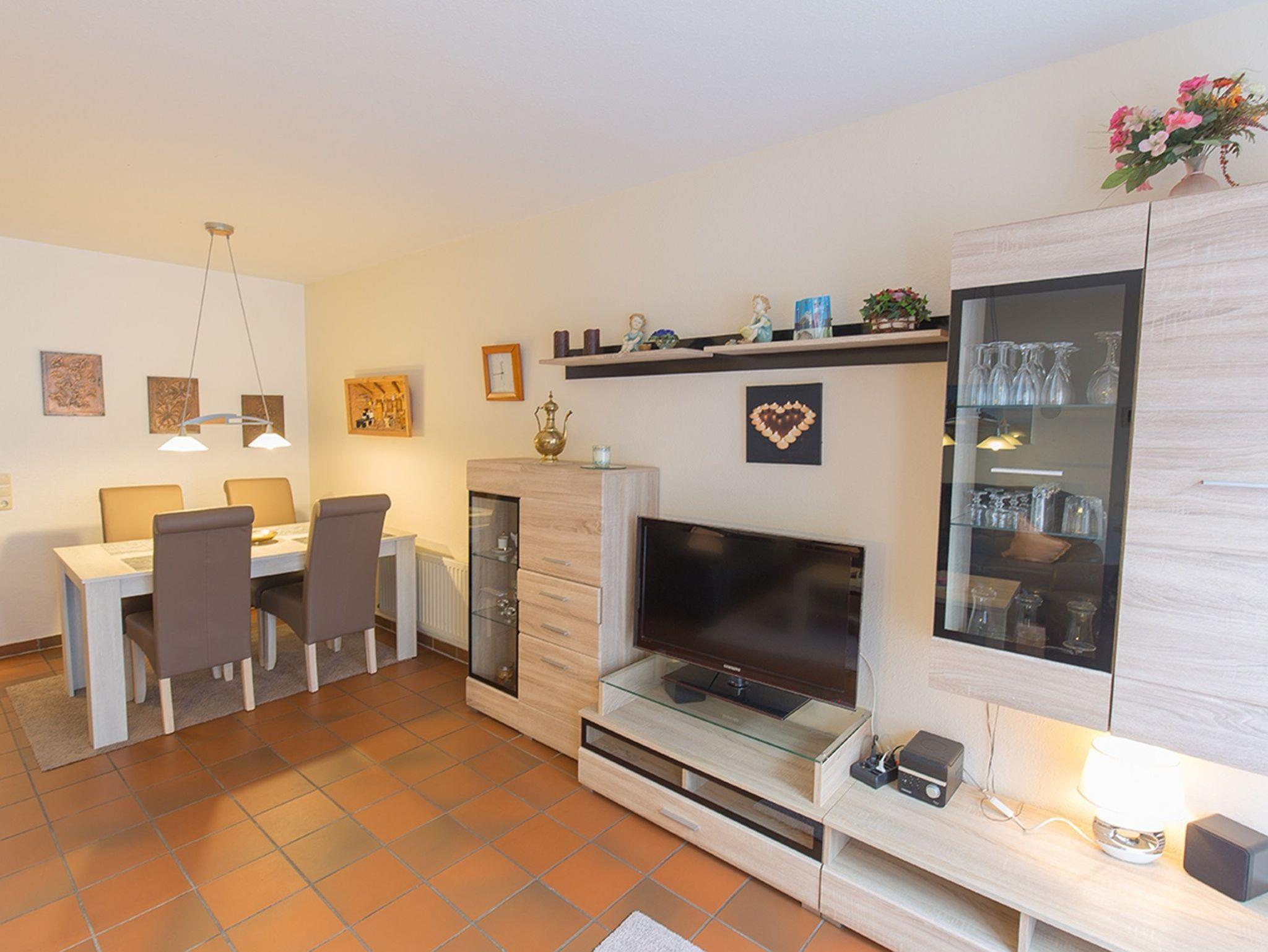 Ein herzliches Moin Moin im Ferienhaus Godewind. Ihr Stellplatz befindet sich direkt am Objekt. Das gemütliche Ferienhaus bietet Ihnen Behaglichkeit und Entspannung. Im Eingangsbereich liegt die separate Küche; hier ist alles vorhanden für entspanntes Kochen. Weiter geht es zum modernen Wohnzimmer mit vorgelagertem Essplatz sowie dem Ausgang zur möblierten Süd-Terrasse. Unser Ferienhaus Godewind hat zwei Schlafzimmer, eines davon mit Doppelbett und eines mit zwei Einzelbetten, dazu große Kleiderschränke. Zudem halten wir ein Babyreisebett mit Matratze und einen Kinderhochstuhl bereit. Im Obergeschoss liegt auch das Fenster-Duschbad. Ein separates WC gibt es im Eingangsbereich.