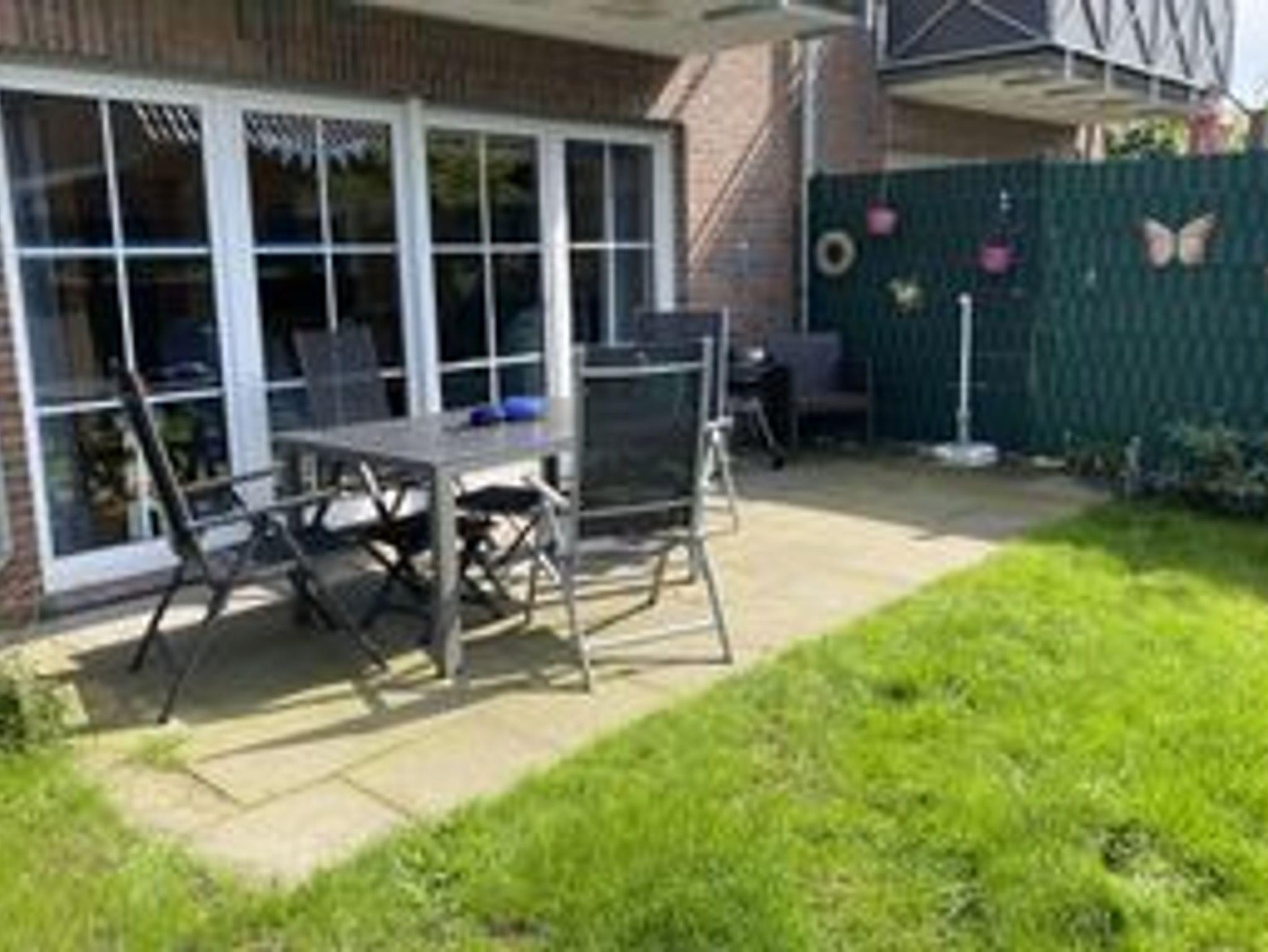 Helle Erdgeschosswohnung mit Terrasse und Garten in Dangast, ideal für Familien und Haustiere willkommen.