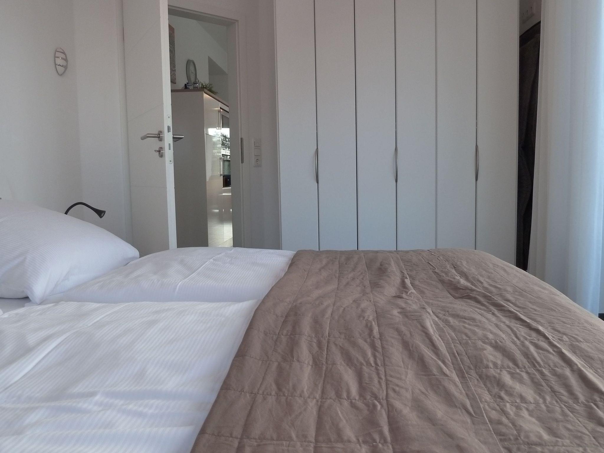 * zwei Schlafzimmer (1 x Doppelbett 180 x 200 cm, 1 x Doppelbett 160 x 200 cm), eines mit zusätzlichem Fernseher