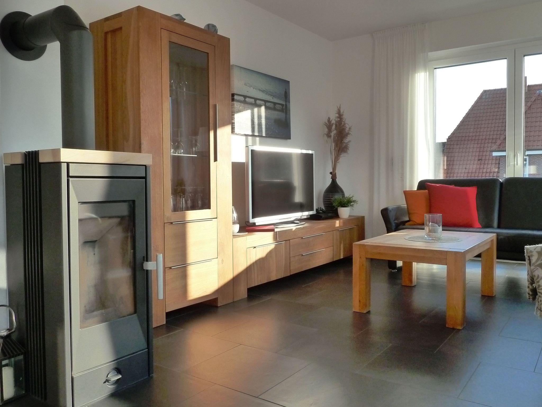 Luxuriöses Penthouse in Dangast mit Meerblick, Kamin und moderner Ausstattung für entspannte Urlaubstage.