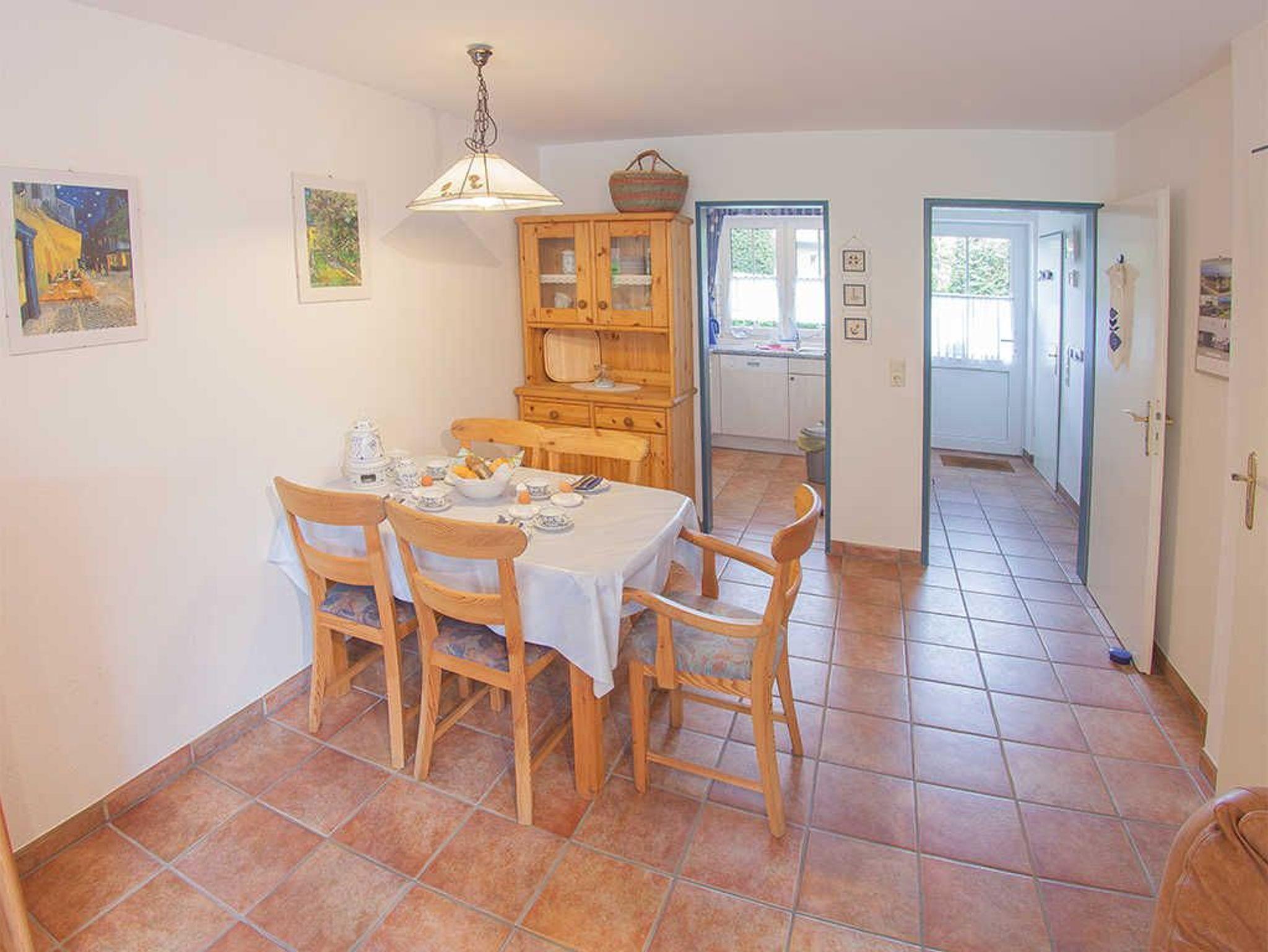 Willkommen im Ferienhaus Loje, ihrem behaglichen zu Hause in Dangast. Das Haus liegt zurück gebaut in Ruhiglage und hat zwei eigene Auto-Stellplätze. Durch den Eingangsbereich mit Zugang zum Gäste-WC und Aufgang zu den oberen Etagen gelangen Sie zunächst in den großzügigen Wohnraum mit harmonischer Möblierung, Ledersitzgarnitur und dem Ausgang zur begrünten Terrasse. Vor dem Essbereich liegt die separate, modern ausgestattete Küche, mit allem Komfort für ein entspanntes Kochen. Auf der ersten Etage befindet sich das helle Fenster-Duschbad mit Waschmaschine und zwei Schlafzimmern, eines mit Doppelbett, das andere mit zwei Einzelbetten ausgestattet. Im Dachgeschoss bieten wir eine weitere Schlafmöglichkeit. Genießen Sie den ausklingenden Abend auf der großen Terrasse.