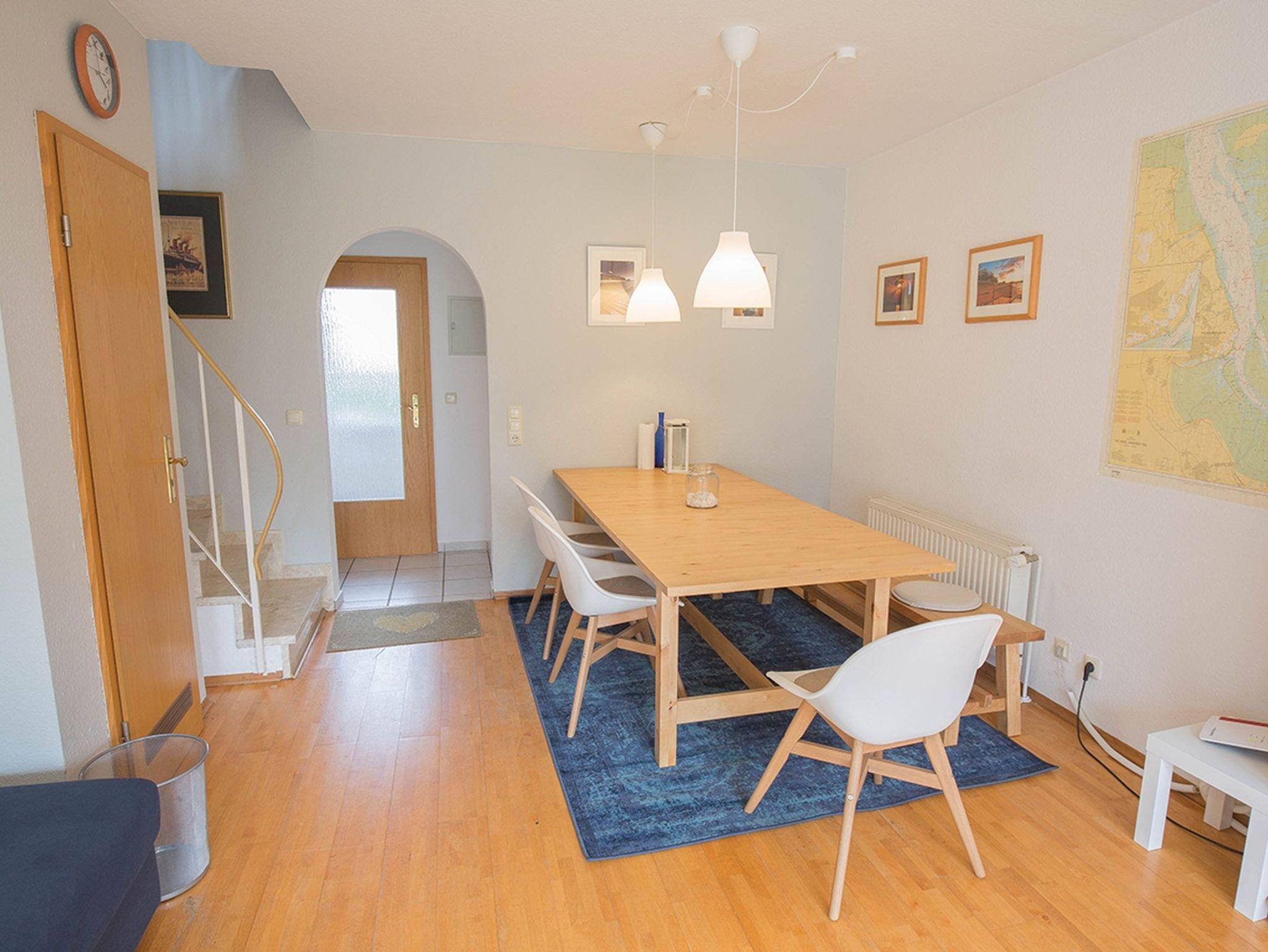 Das Ferienhaus Heineke ist ein Reihenendhaus und liegt am Ortsrand von Dangast inmitten Felder und Wiesen nur 10 Gehminuten vom Strand entfernt. Es ist 80 qm groß, ideal für eine Familie - bis sechs Personen - modern und geschmackvoll eingerichtet. Im Erdgeschoss befinden sich eine separate Küche, ein Gäste-WC, sowie ein großes Wohn/Esszimmer mit angeschlossener Terrasse. In der ersten Etage gibt es ein großes Schlafzimmer mit Doppelbett, ein Duschbad mit Waschmaschine und ein weiteres Schlafzimmer mit zwei Einzelbetten. Von diesem Zimmer geht es über eine Wendeltreppe zum ausgebauten Dachgeschoss mit weiteren zwei Einzelbetten. Zwei Baby/Kleinkinder-Reisebetten und Kinderhochstühle stehen zur Verfügung.