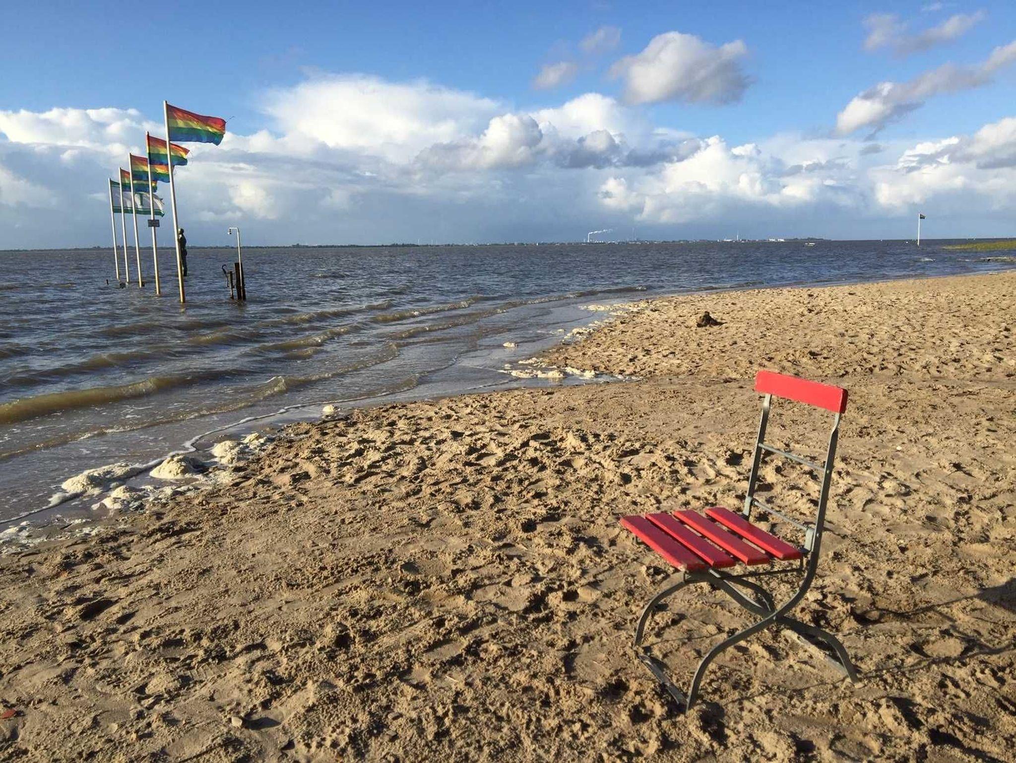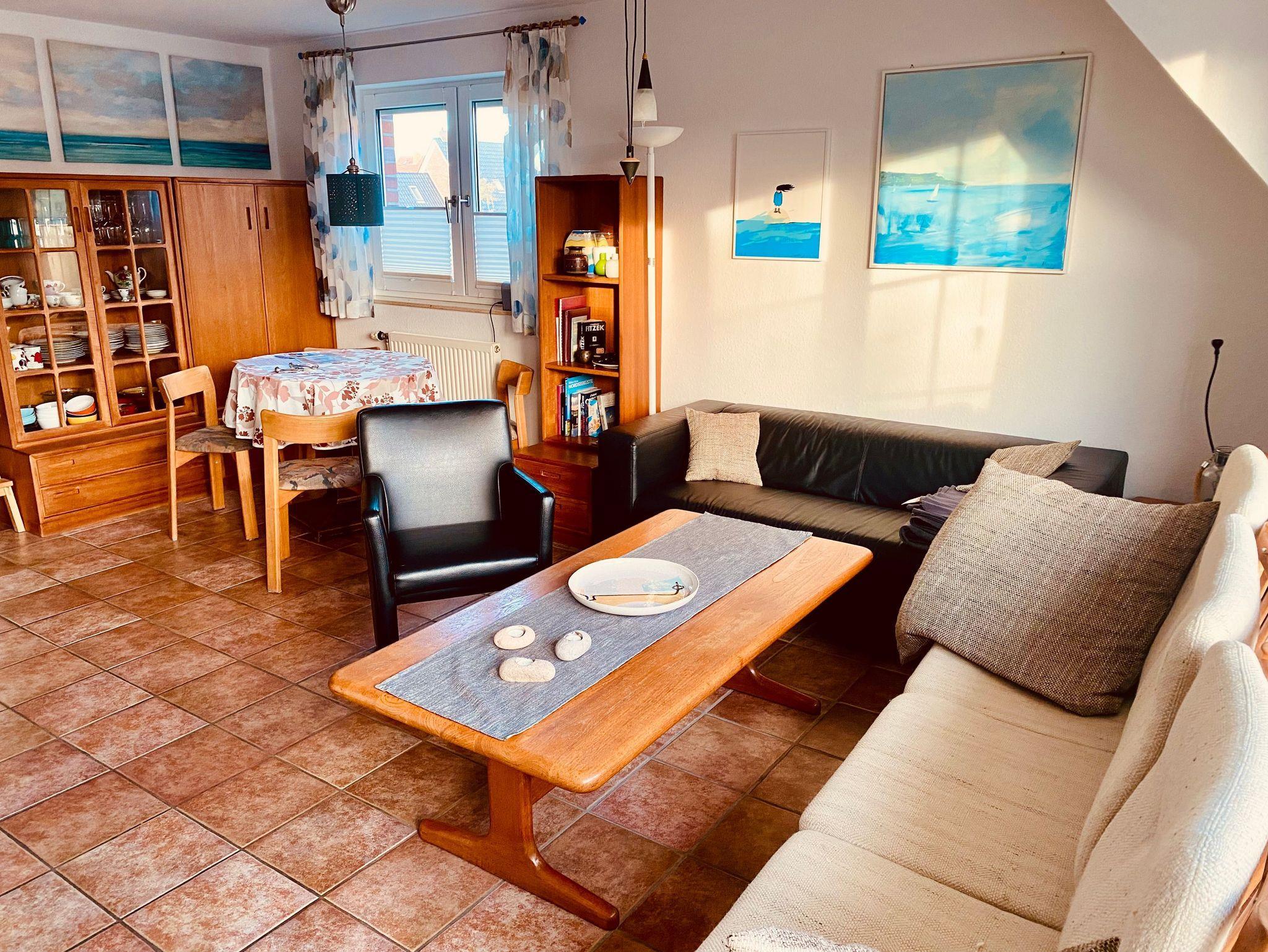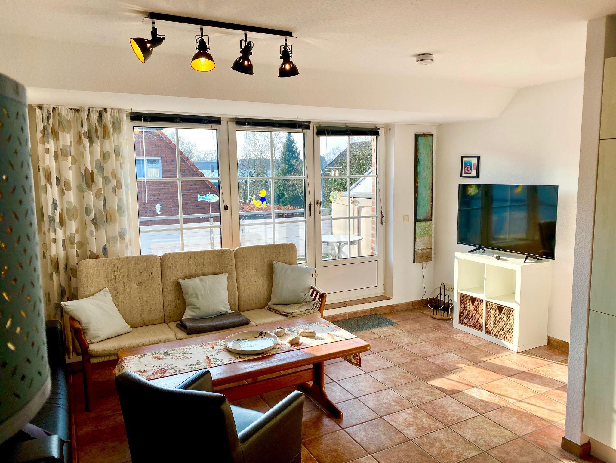 Helle Ferienwohnung in Dangast mit großem Südbalkon, nah am Meer und zentral im Ort gelegen.