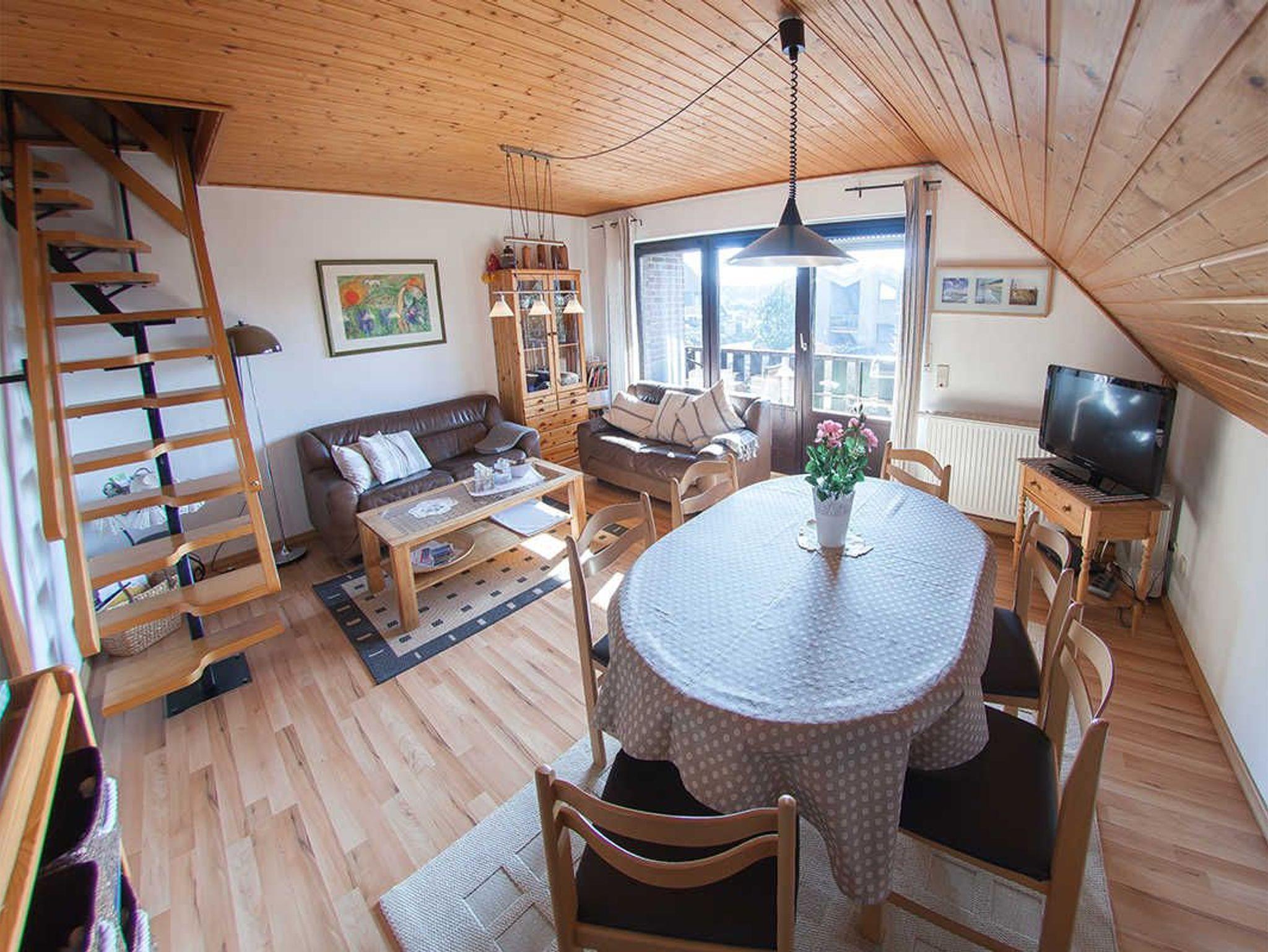 Gemütliche Maisonette-Ferienwohnung Anker in Dangast mit Balkon und moderner Ausstattung, ideal für Familien und Gruppen.