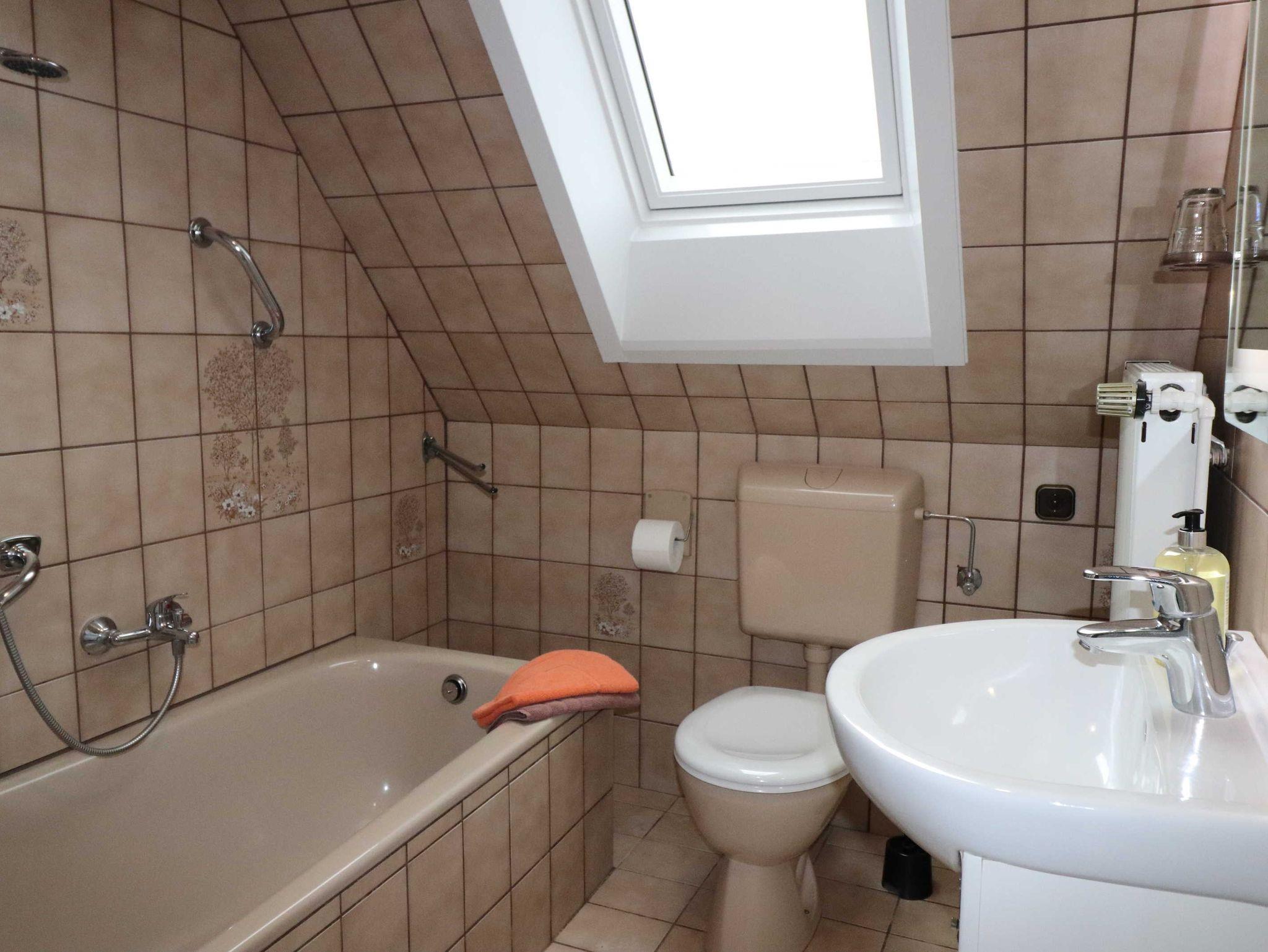 finden. Das Badezimmer ist mit einer Badewanne, in der Sie auch duschen können, ausgestattet und bietet so die Möglichkeit, sich auch im Urlaub bei einem Vollbad zu entspannen.