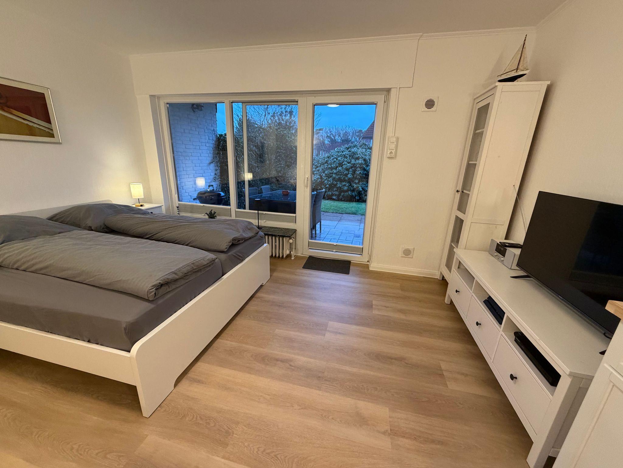 **** Dangaster Tied 2 **** Neu renoviert in 2026, TOP- hochwertige Komfort Ferienwohnung, Wohn-Schlafzimmer/Terrasse/Gartenmöbel/eigener Strandkorb in zentraler Strand- u. Einkaufsnähe,HD TV, W-LAN, hochwertig, wunderschön und zentral gelegen.