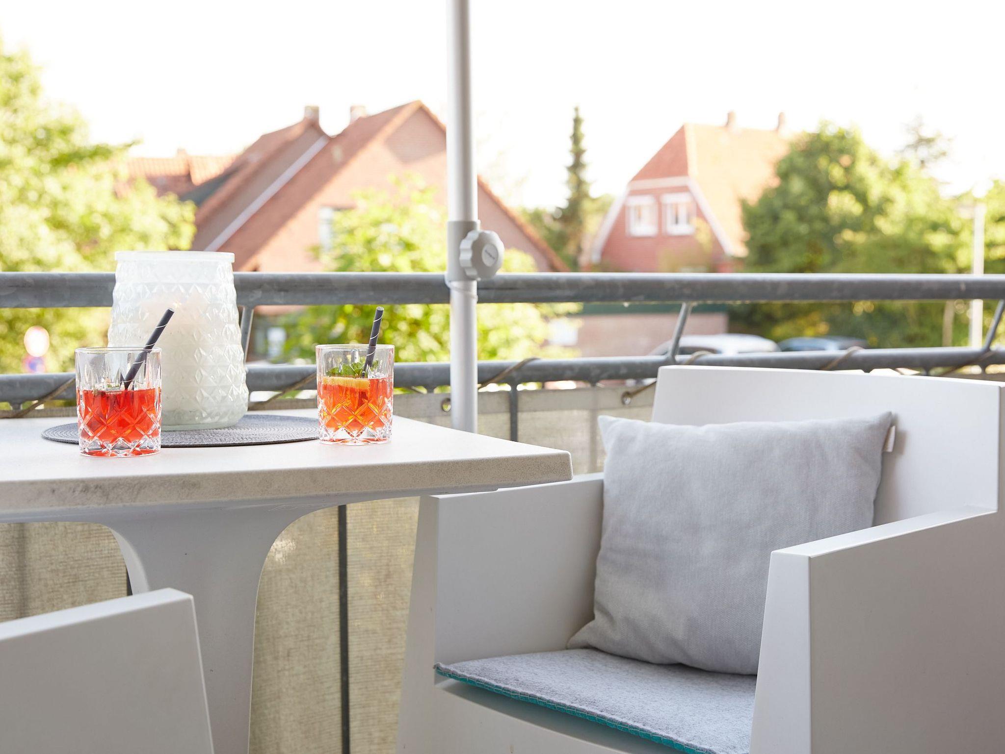 Die Ferienwohnung Kleine Auszeit in Dangast bietet frische Nordseeluft, modernen Komfort und einen Südbalkon mit Designer-Möbeln.