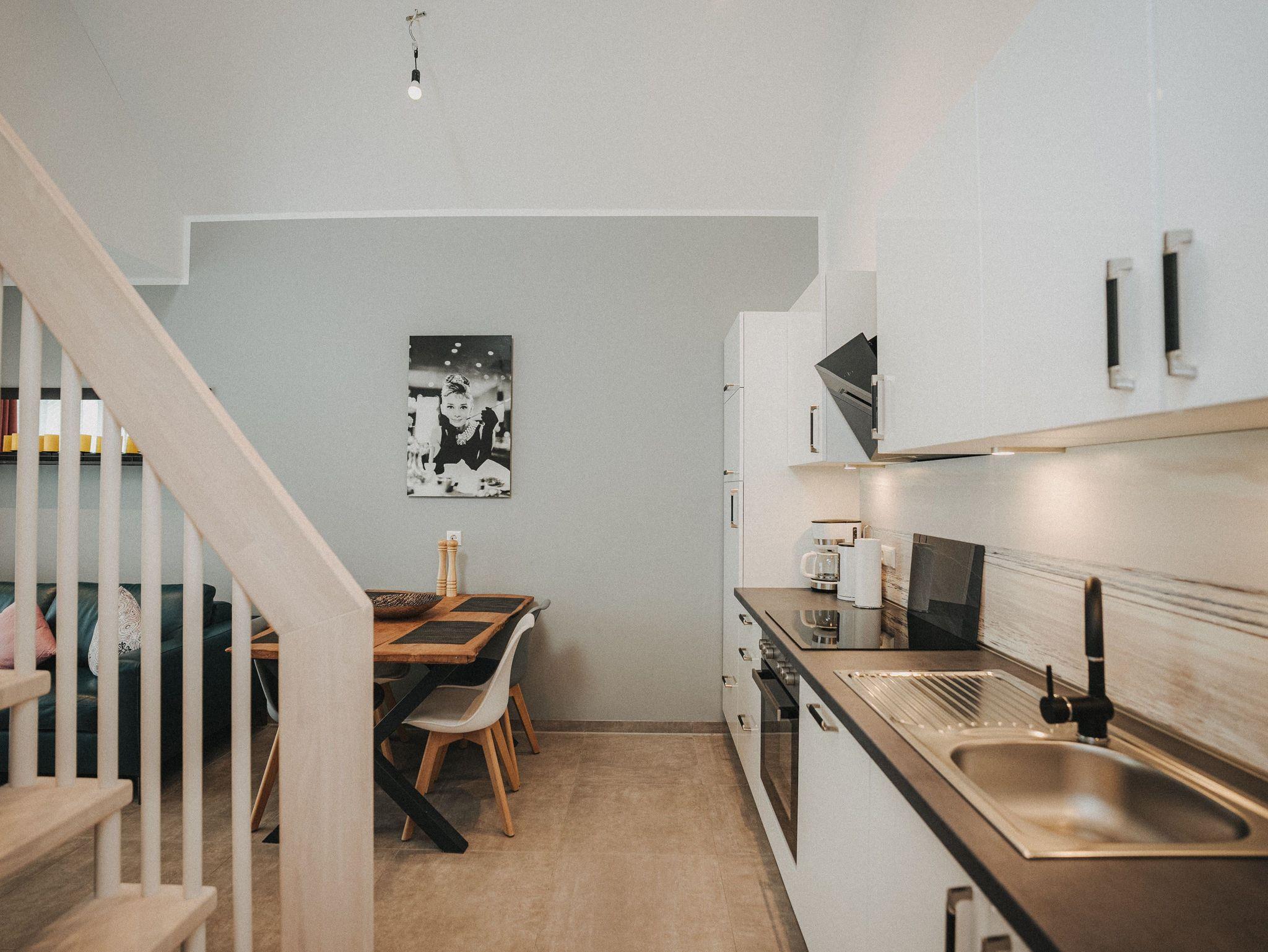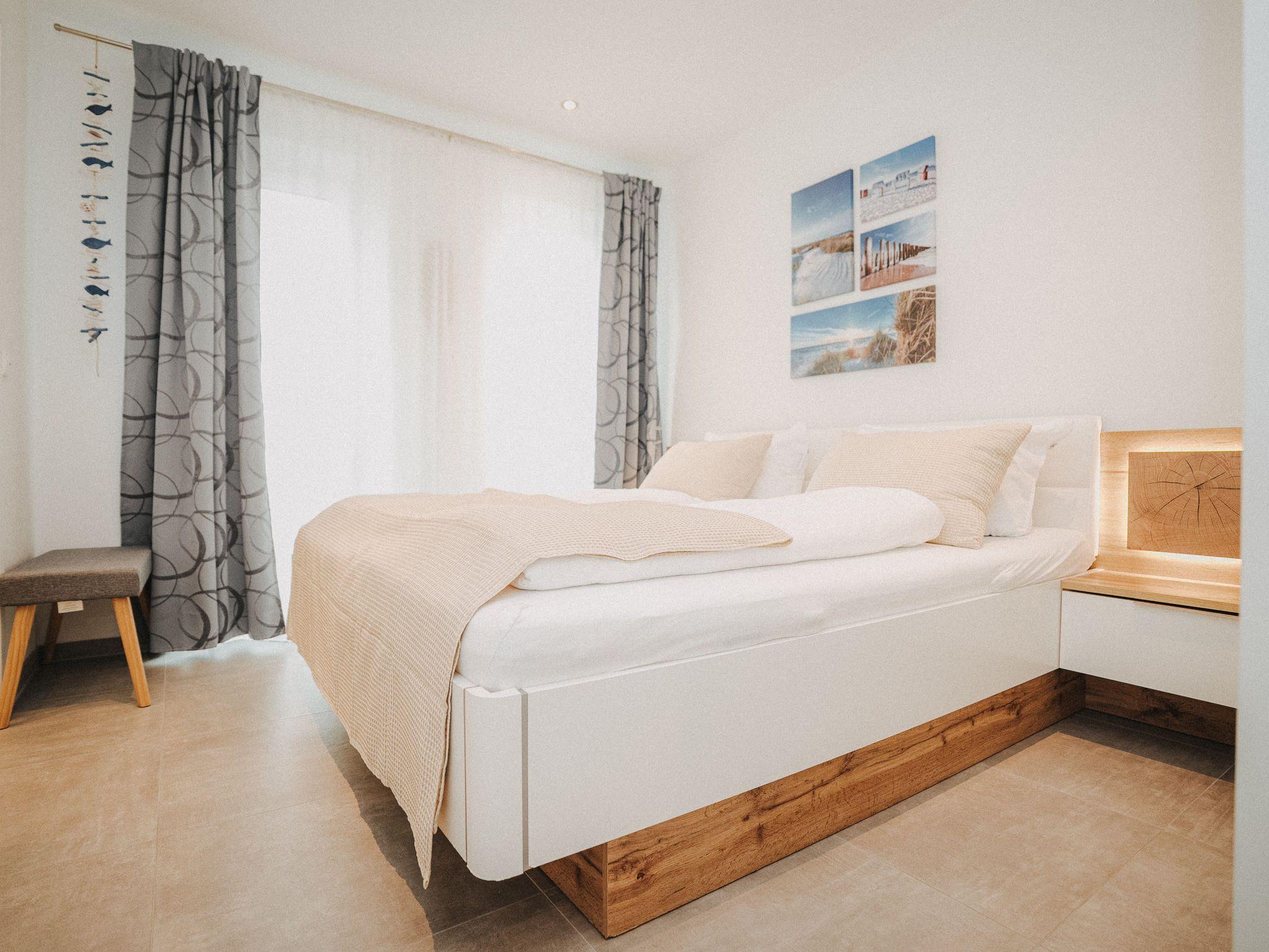 Helle Ferienwohnung Kleines Glück in Dangast mit Balkon, Nähe Strand und familienfreundlicher Ausstattung.