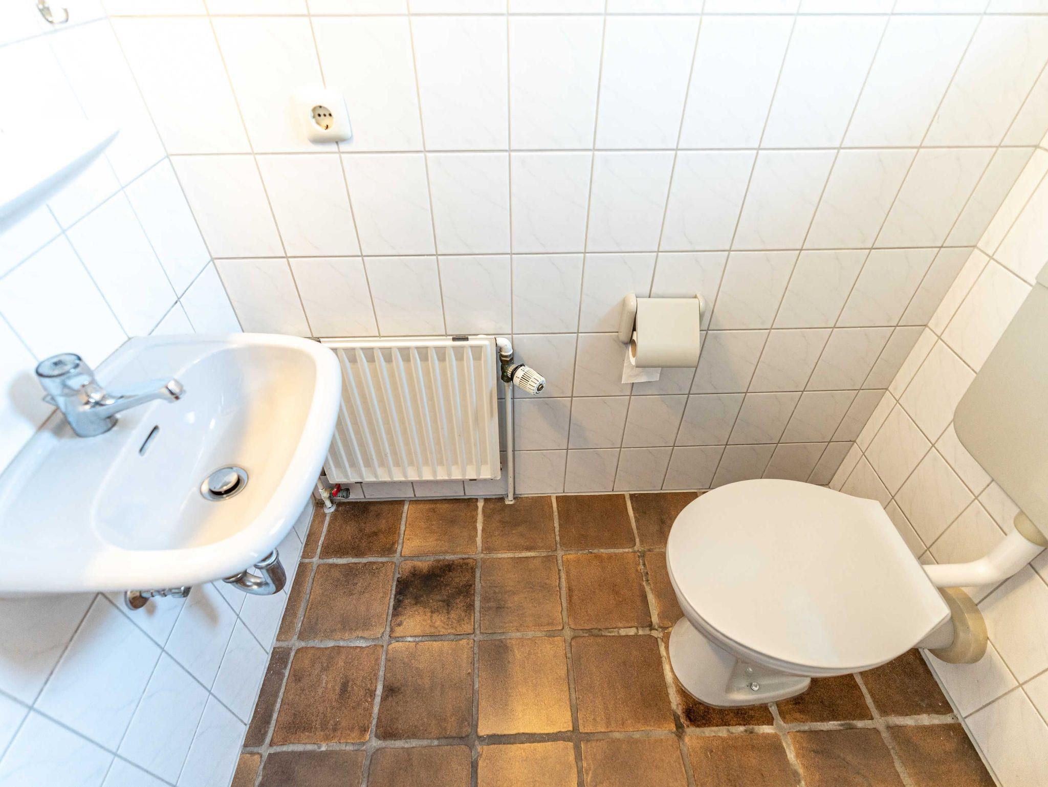 Im ersten Obergeschoss liegen zwei Schlafräume mit je zwei Einzelbetten und einem Doppelbett sowie das freundliche Duschbad mit Fenster. Im Dachgeschoss gibt es noch ein Zimmer mit weiteren zwei zusammengestellten Einzelbetten und ein Babyreisebett.