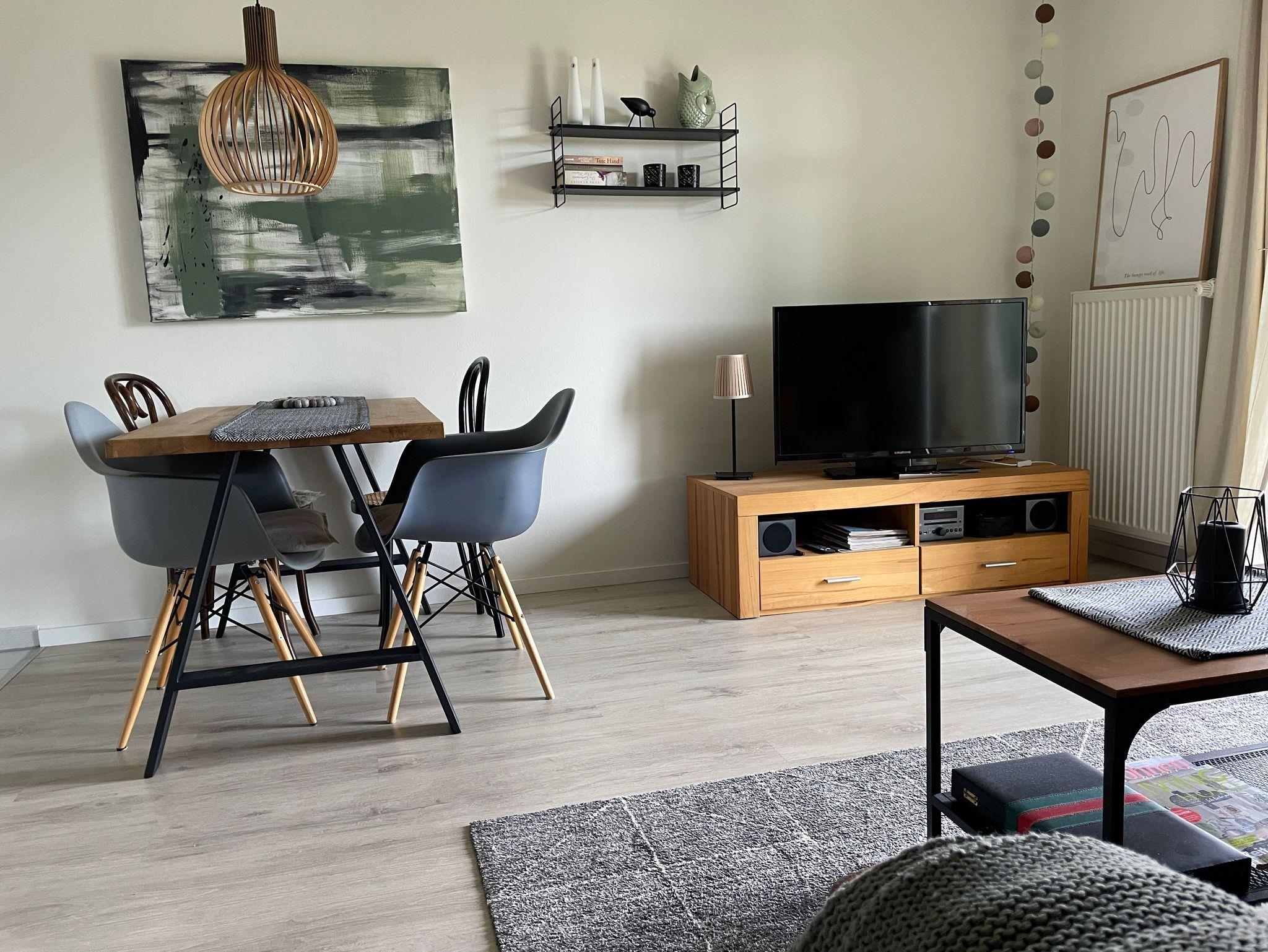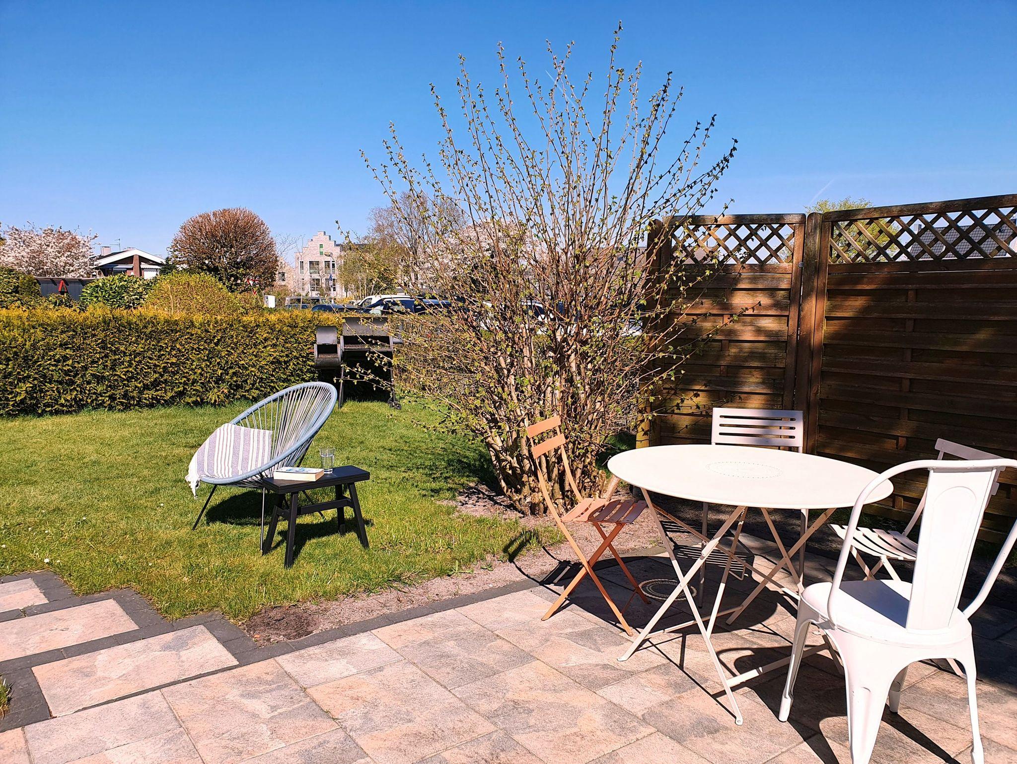 Moderne Ferienwohnung in Dangast mit zwei Terrassen, Garten und familienfreundlicher Ausstattung für entspannte Urlaubstage.