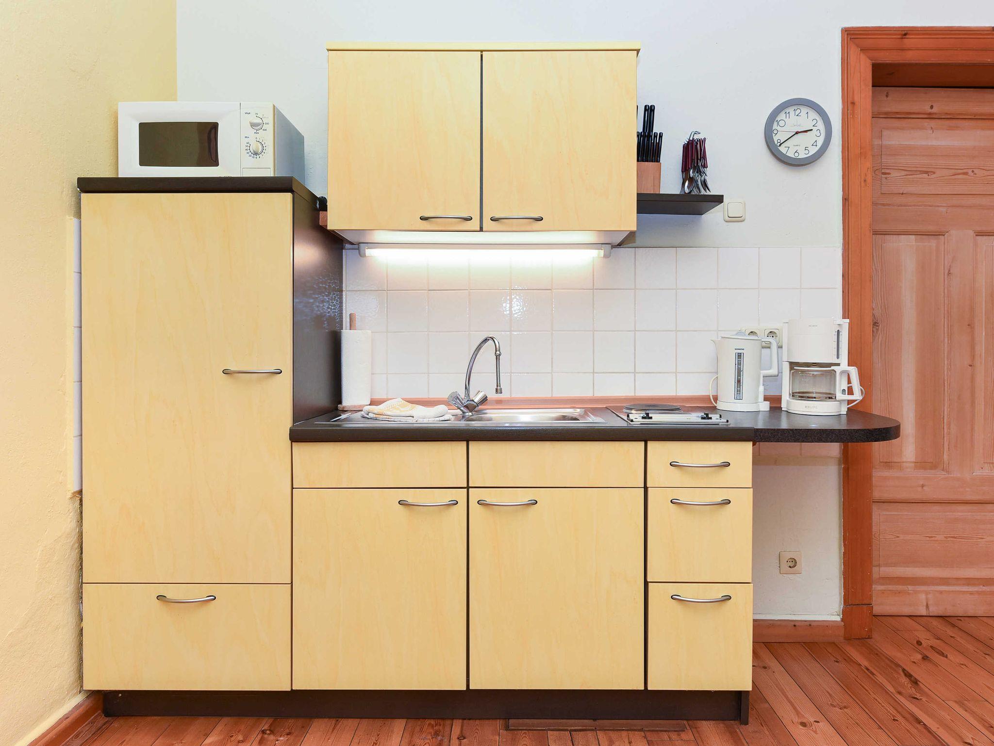 Wohnraum mit integrierter Küche, Schlafzimmer, Badezimmer mit Dusche, Waschtisch und WC, Erdgeschoss, Internetzugang über WLAN möglich, optimal für 2 Personen.