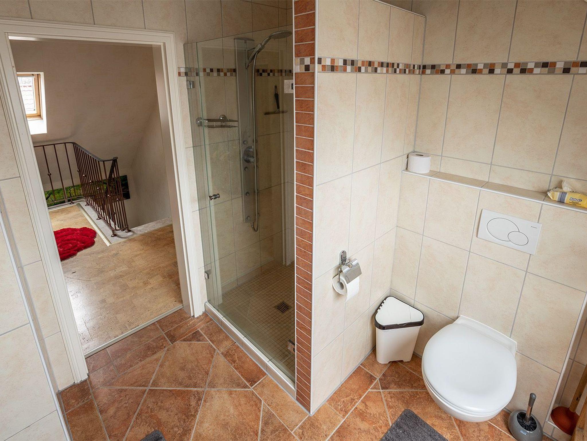 Sie betreten das Haus durch eine große Diele mit Durchgang rechts zum Hauswirtschaftsraum sowie dem Gäste-WC. Weiter geradeaus gelangen Sie in den geräumigen Wohn- und Kochbereich mit Kamin und Essplatz. Eine bequeme Wohnlandschlaft sorgt für Entspannung. Im Erdgeschoss befinden sich zwei Schlafzimmer mit je einem Einzelbett. Ins Obergeschoss gelangen Sie über eine offene Steintreppe zu den weiteren drei Schlafräumen mit je einem Doppelbett sowie dem Fenster-Duschbad mit sowohl Badewanne als auch Dusche in mediterranem Stil.