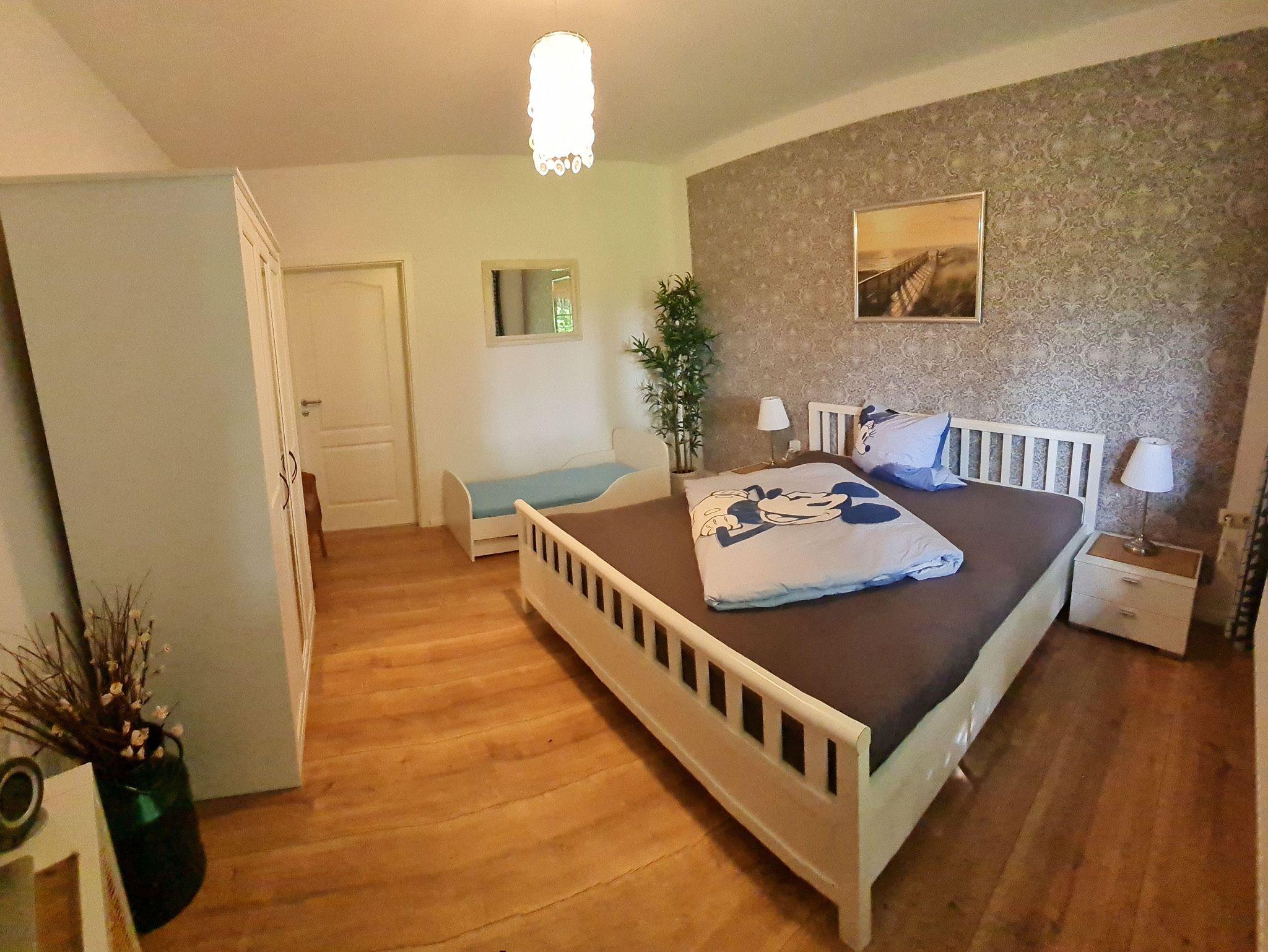Unsere familienfreundliche, Inhaber geführte Ferienwohnung Große Emma verfügt über 2 Schlafzimmer mit je einem Doppelbett mit einer Liegefläche von 180 x 200 cm (selbstverständlich mit TV) .