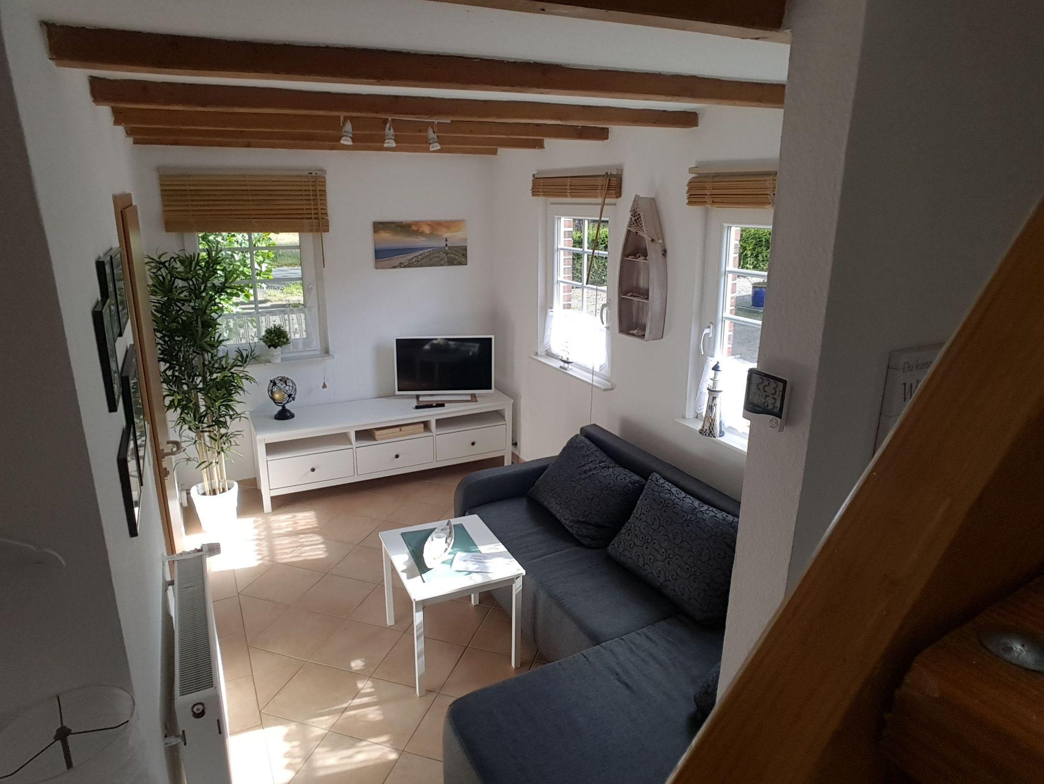 Im gemütlichen Wohnzimmer befindet sich zusätzlich ein ausziehbares Sofa, auf dem bei Bedarf eine weitere Person übernachten kann. Die Liegefläche beträgt hier ca 140 x 200 cm.