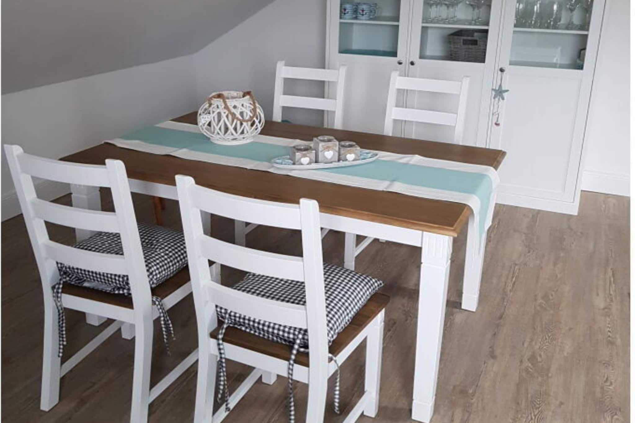 Wir haben 2020 genutzt um eine schöne helle Dachgeschosswohnung entstehen zu lassen. Es gibt ein Schlafzimmer mit Doppelbett und Babybett,sowie ein zum Bett umfunktionierbares Sofa im Wohnzimmer. Küche und Wohn-Essraum sind wunderschön hell und großzügig. Die Kombination mit der Wohnung im EG bietet eine perfekte Möglichkeit für einen gemeinsamen Urlaub mit Freunden oder Familie.