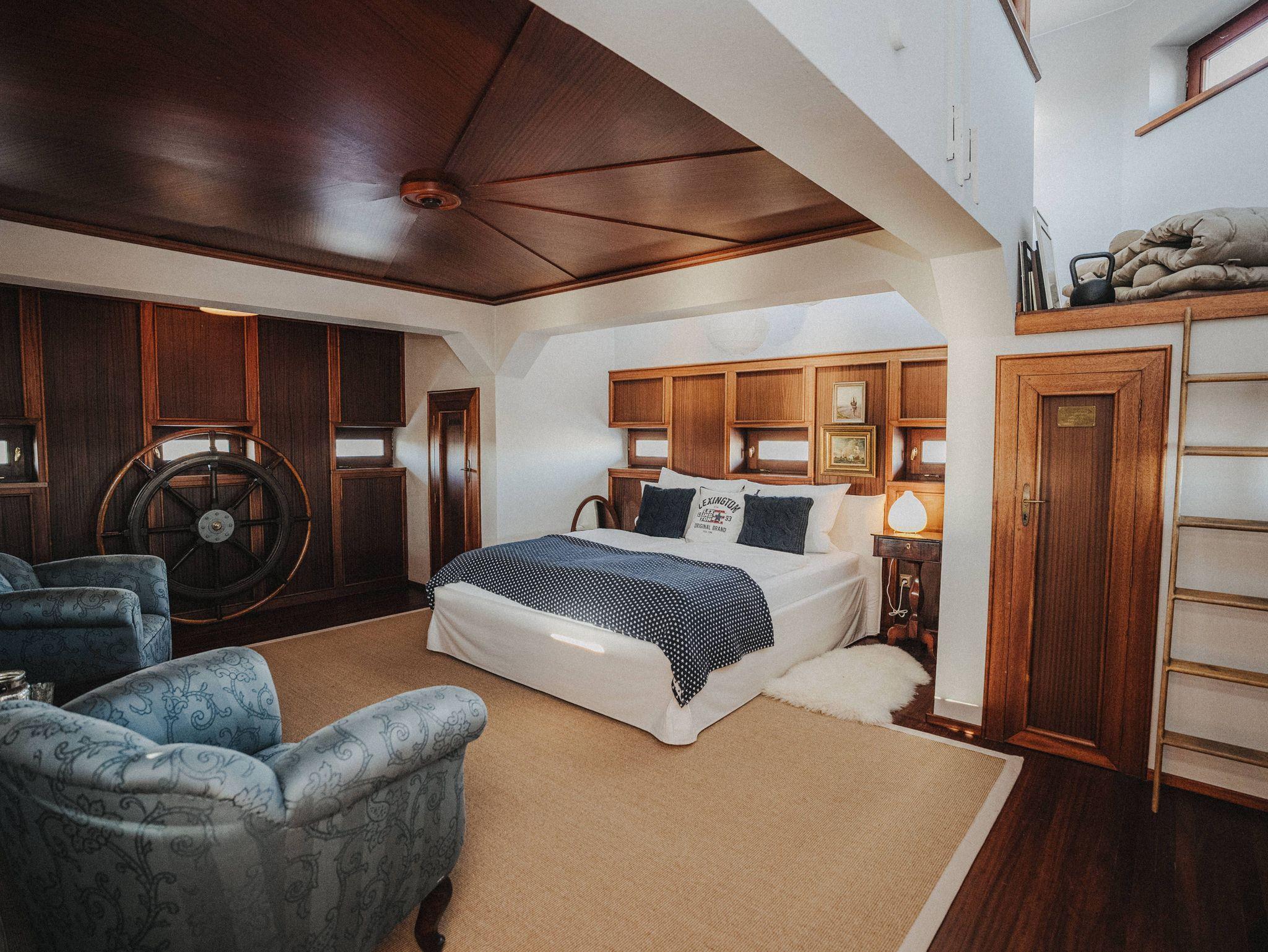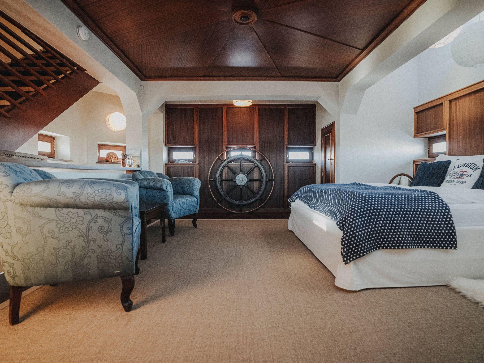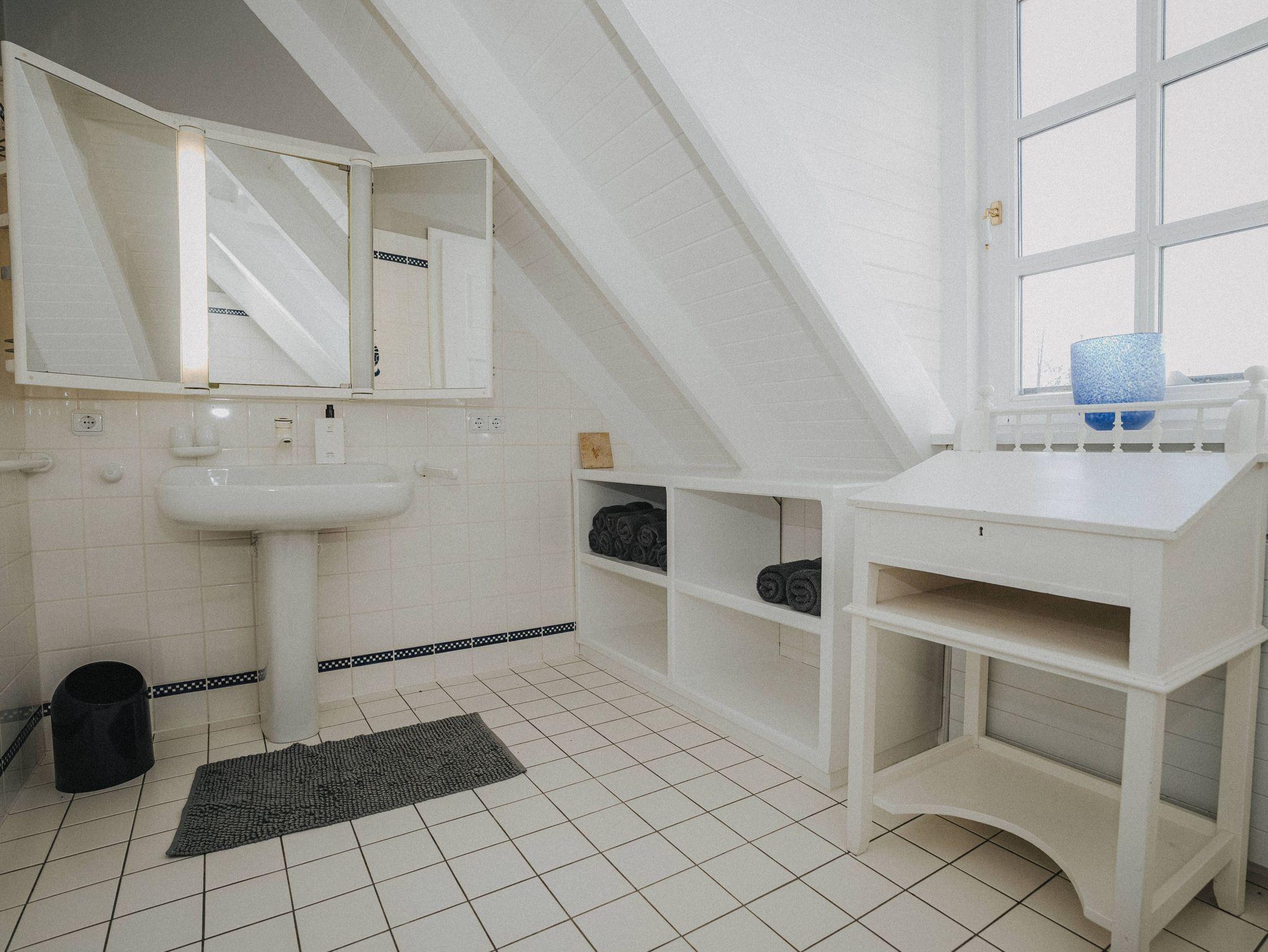 Das einzigartige Ferienhaus liegt am Vareler Hafen direkt am Deich und hat auf der Dachterrasse einen wunderschönen Rundumblick auf das Wattenmeer. Durch ein großes Tor fahren Sie vorbei an der Ostterrasse direkt auf ihren Carport zu mit Platz für mehrere Fahrzeuge. Im Eingangsbereich empfängt Sie bereits stilvolles Interieur - eine Innenarchitektin ist Eigentümerin und hat ihr Elternhaus modern-maritim unter Berücksichtigung der älteren Einrichtungselemente neu gestaltet. Durch eine großzügige Diele mit Gäste-WC gelangen Sie zunächst in einen Sitzbereich mit Blick nach draußen auf die Südterrasse und den Gartenteich. Hier befindet sich auch die U-Küche mit viel Platz auf der Arbeitsfläche. Weiter durch gelangen Sie in den komfortablen Essbereich und zum Wintergarten. Auf der ersten Etage grenzt je ein Bad - eines mit Wanne und eines mit Dusche - an die beiden ersten Schlafräume. Im Turmbereich gelangen Sie nach oben in zu den weiteren beiden Schlafräume - hier nächtigen Sie einmal hell in sommerlichen Strandfarben und im nautischen Design eines dunkel getäfelten Steuerhauses. Sodann erreichen Sie die Dachterrasse mit einer herrlichen Aussicht auf die Natur rund um den Vareler Hafen.