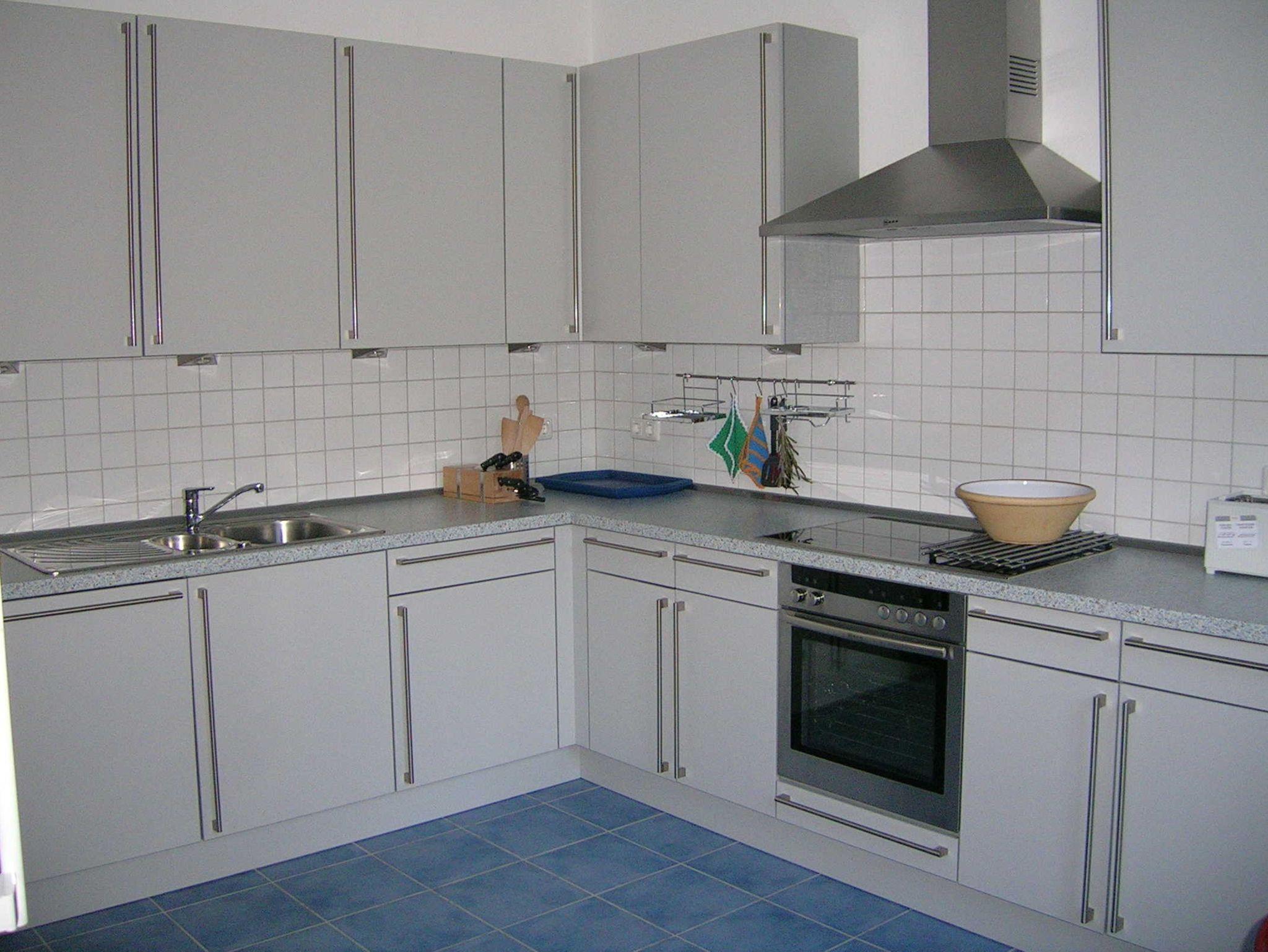 komplett eingerichtet, Spülmaschine, E-Herd mit großem Ceranfeld und Backofen, großer Kühlschrank mit Gefrierfach, Mixer, Kaffeemaschine, Mikrowelle, Toaster, Waschtrockner usw.
