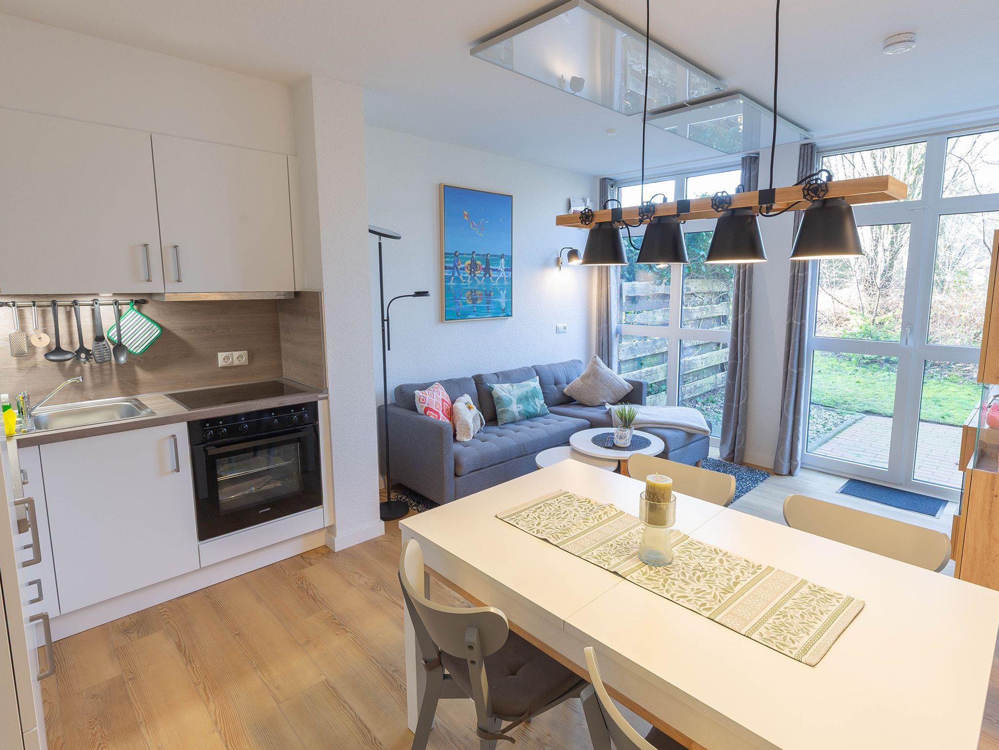 Moderne Erdgeschosswohnung mit Terrasse nahe dem Strand in Dangast, ideal für entspannte Nordseeferien.