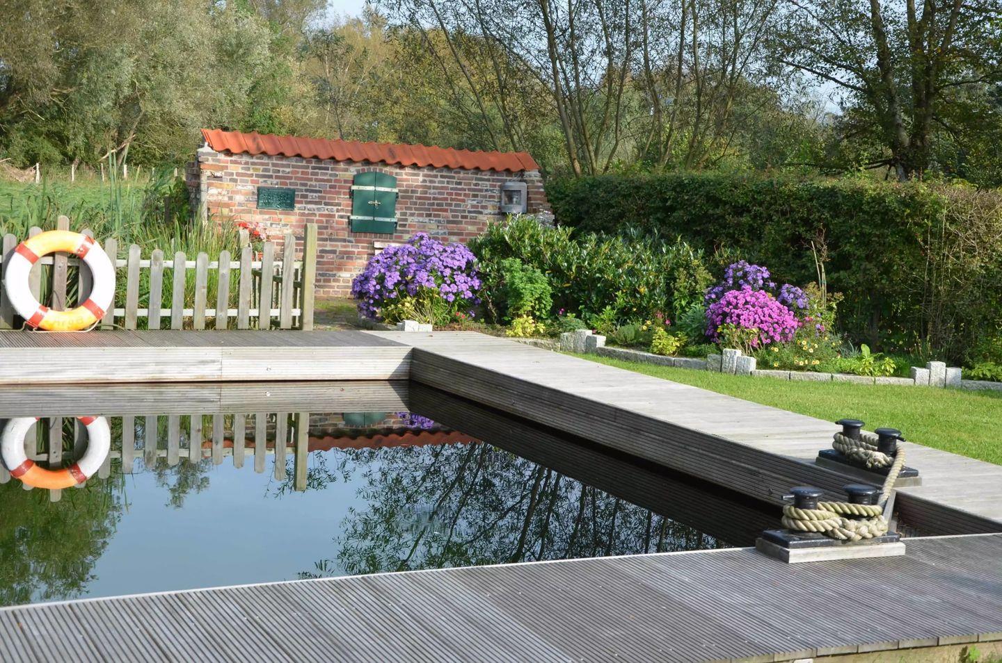 Historisches Ferienhaus am Vareler Hafen mit Sauna, Schwimmteich und großzügiger Terrasse.