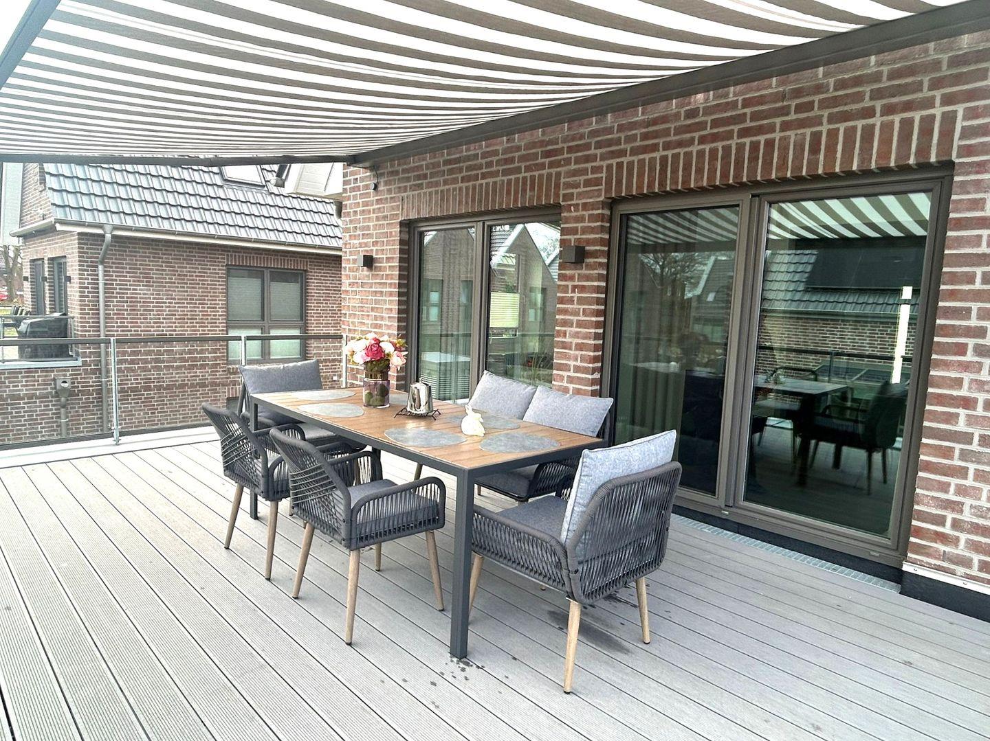 Auch im Außenbereich überzeugt das Haus mit Terrasse, Balkon, Garten, Gartenmöbeln, Sonnenliegen, Markise und Gasgrill. Ein Privatparkplatz ist direkt an der Unterkunft vorhanden.