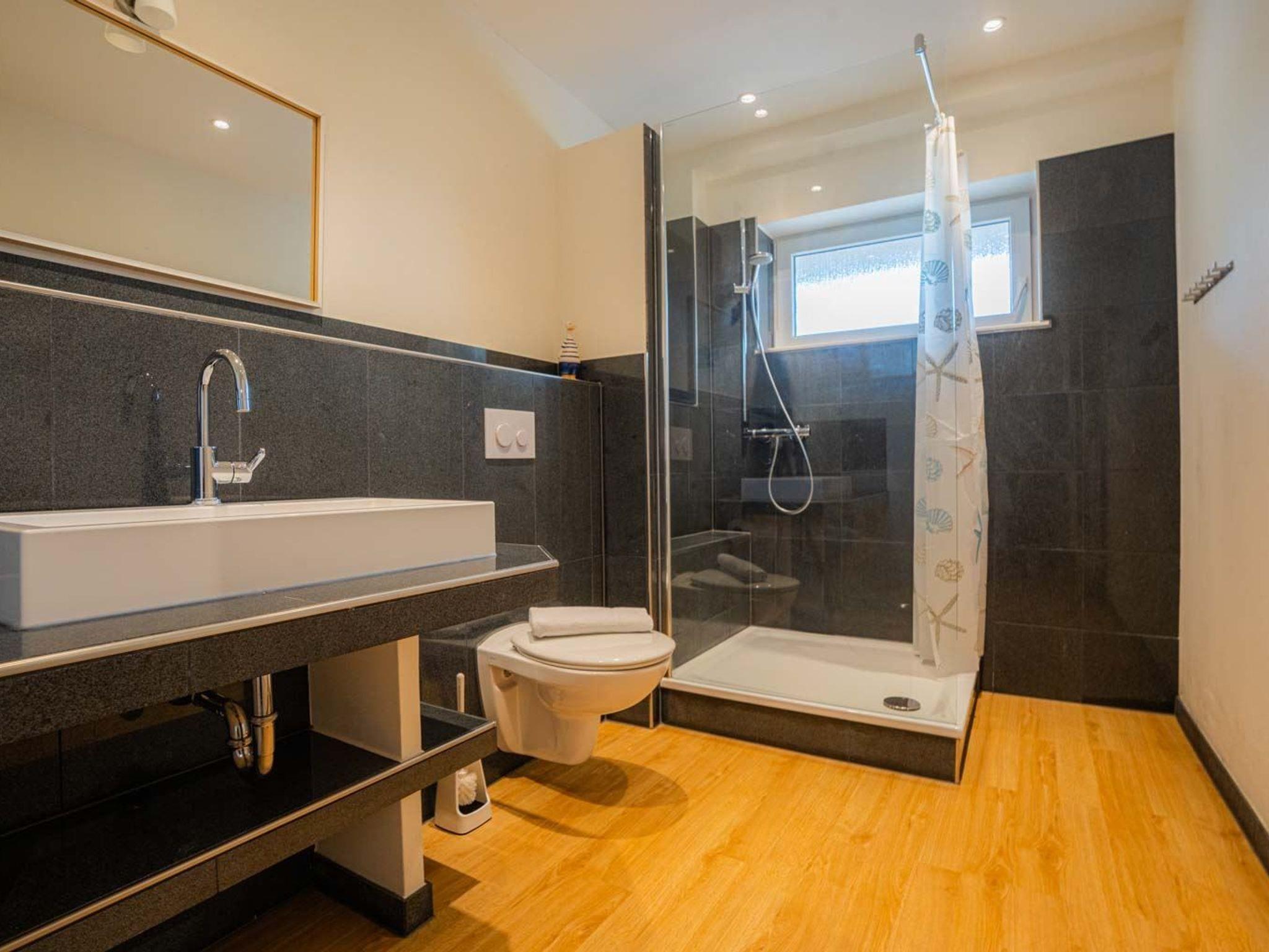 Badezimmer (Duschbad) mit Dusche, WC und Tageslicht.