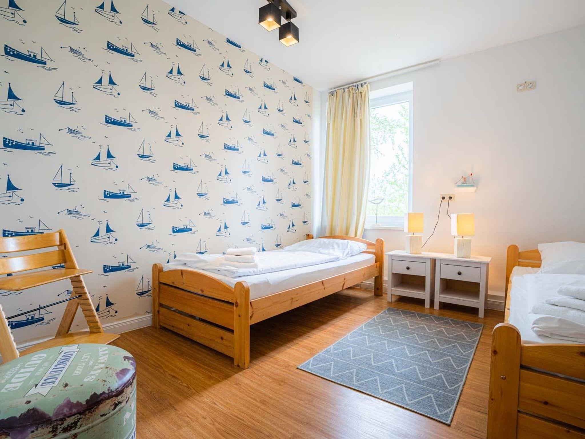 2. Schlafzimmer mit 2 Einzelbetten (je 90x200cm) und offenem Regal-Schrank.