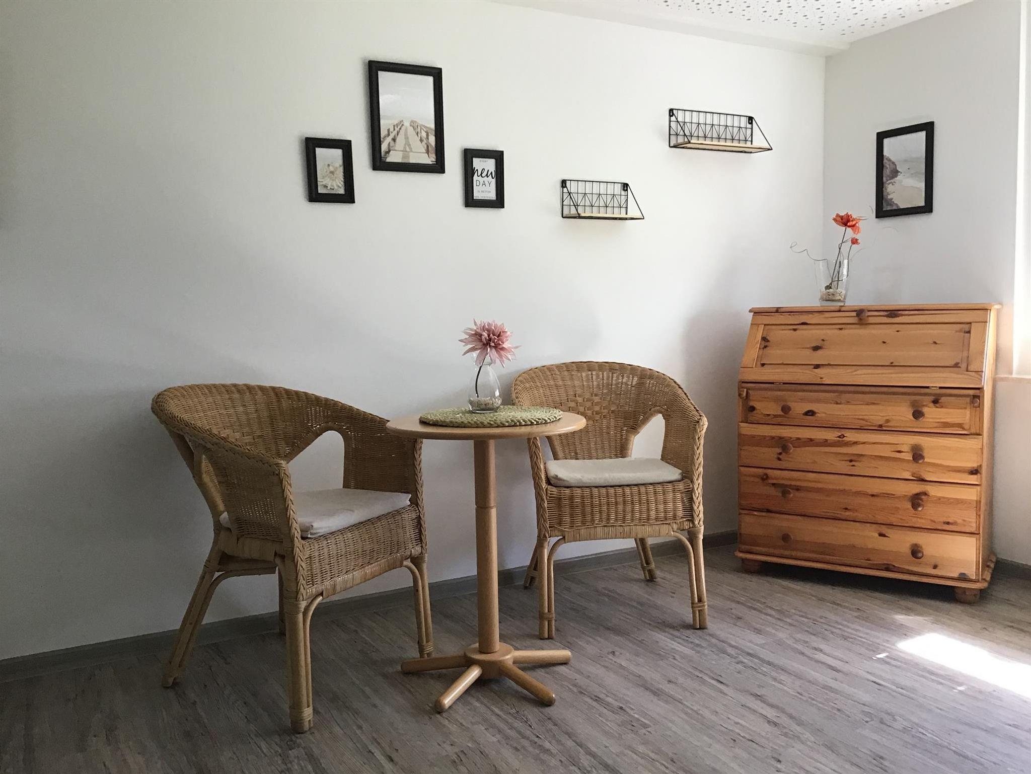Unsere Wohnung „ Uns Tohus“ hat eine Größe von ca. 70m² und befindet sich im Erdgeschoss. Die Wohnung ist komplett modernisiert und behinderten freundlich eingerichtet u.a. mit rollstuhlgeeignetem Bad, Handgriffen, Sitz und Notfallknopf. Die offene Wohnküche ist ebenfalls mit dem Rollstuhl unterfahrbar. Die Wohnung hat zwei separate Schlafräume. Für einen ungehinderten Zugang zur Wohnung sorgt eine Rampe vor der Wohnungstür. Eine eigene Terrasse mit Ausblick über die Felder rundet die Ausstattung der Wohnung ab. Waschmaschine und Trockner zur Gemeinschaftsnutzung sind vorhanden.