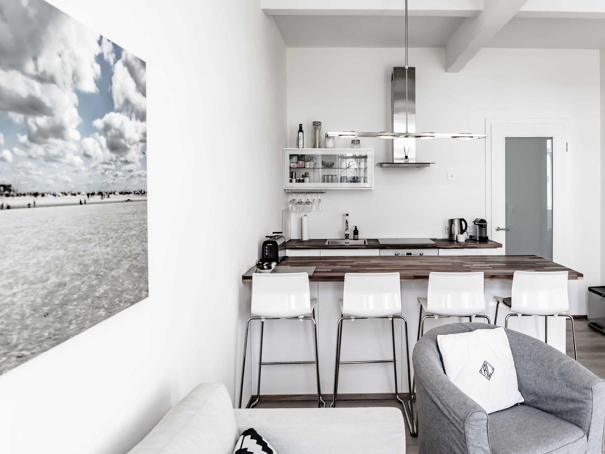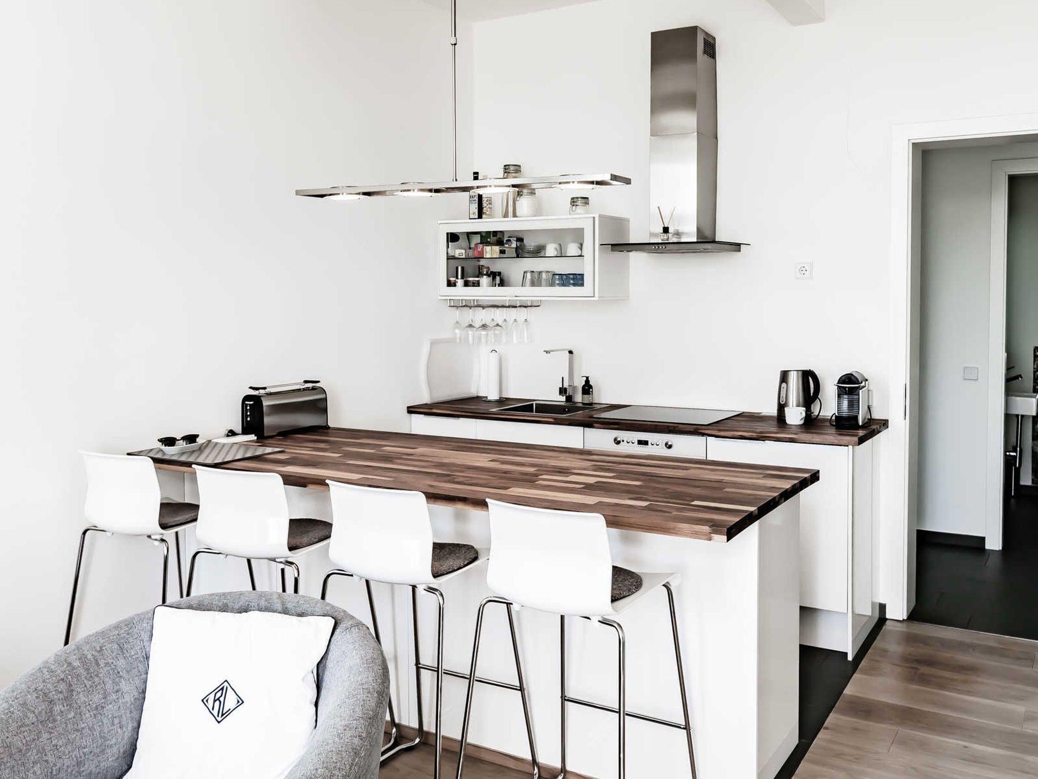 hochwertige Küche mit Komplettausstattung inkl. Spülmaschine, Induktionskochfeld, Mikrowellenbackofen, Nespresso Kaffeemaschine etc.