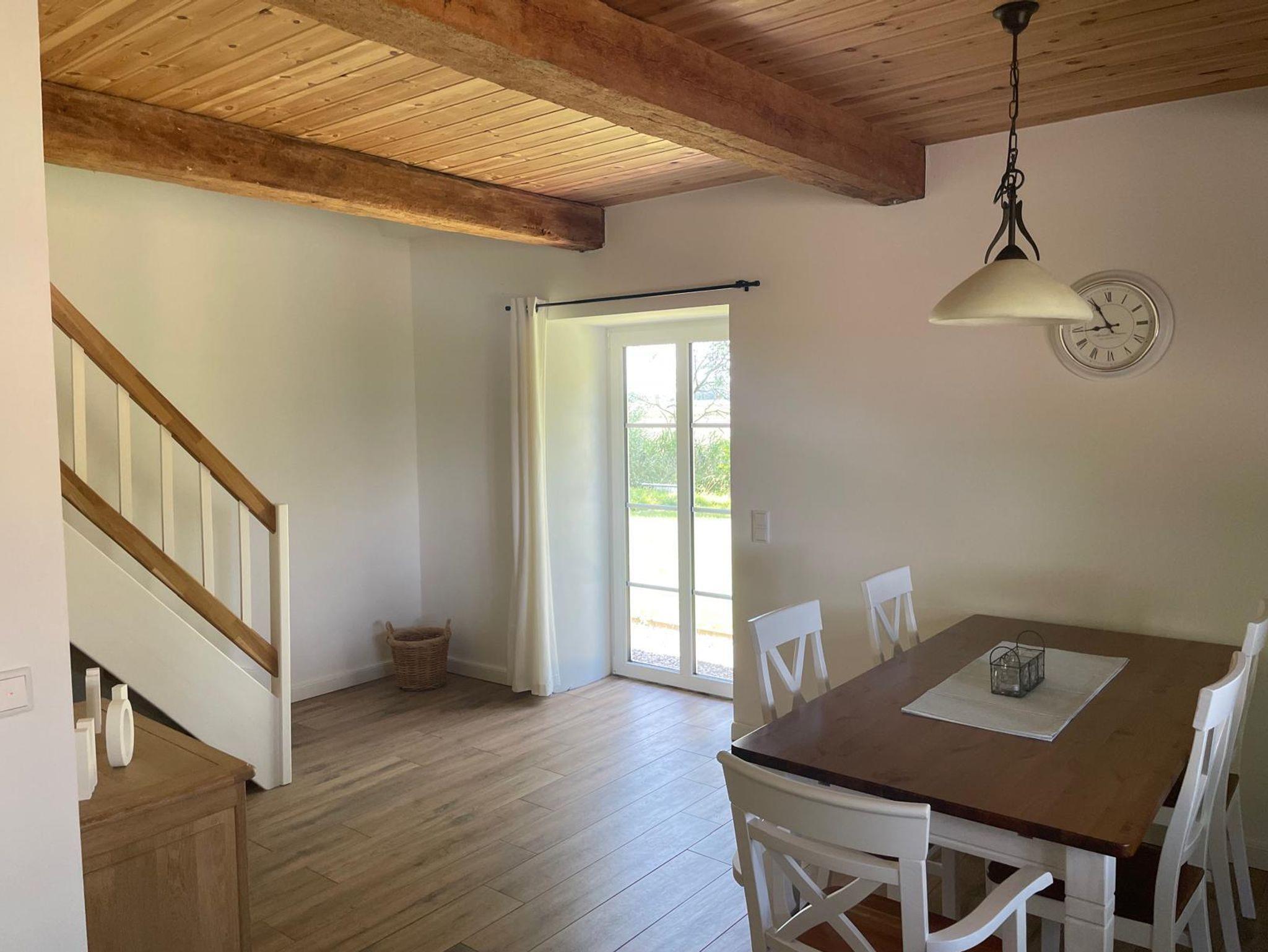 Die ca 70 m² große Wohnung in unserem frisch renoviertem Reetdachhaus ist modern und gemütlich eingerichtet. Die Wohnung beinhaltet im 1.OG 2 Schlafzimmer (1 Doppelbett, 1 ausziehbares Doppelbett), ein geräumiger Wohnbereich und ein modernes Bad. Im Erdgeschoss befinden sich ein Gäste-WC, die Küche, der Essbereich und ein direkter Zugang zum Garten, von dem Mann Abends die wunderschönen Sonnenuntergänge genießen kann.