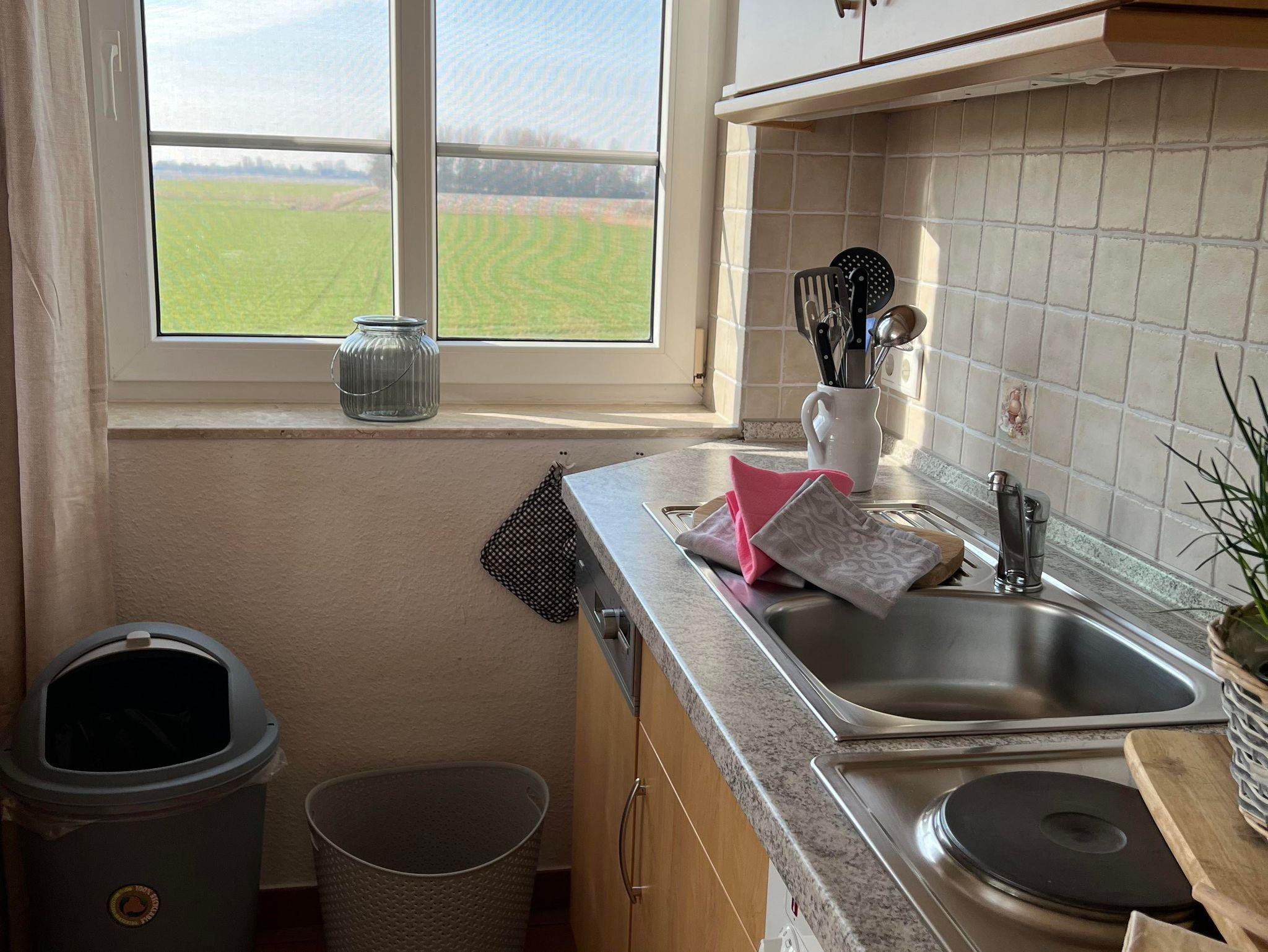 Sie haben durch den hellen und freundlichen Wohnraum die Möglichkeit auf das Marschenland und auf den Deich zu schauen.