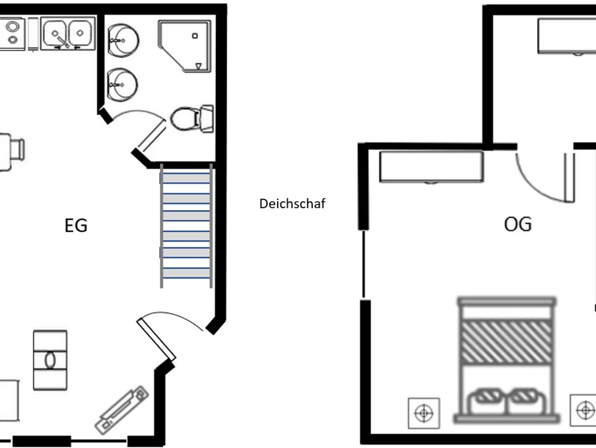 Zwei Erwachsene finden ihr zweites Zuhause im haubarg am meer in der Ferienwohnung Deichschaf. Das großzügige Schlafzimmer mit Doppelbett befindet sich in der ersten Etage. Der gemütliche Wohnbereich mit offener Küche sowie ein ganz neues (2022) Duschbad im Erdgeschoß bietet Raum und alles was man für einen gelungenen Urlaub braucht.