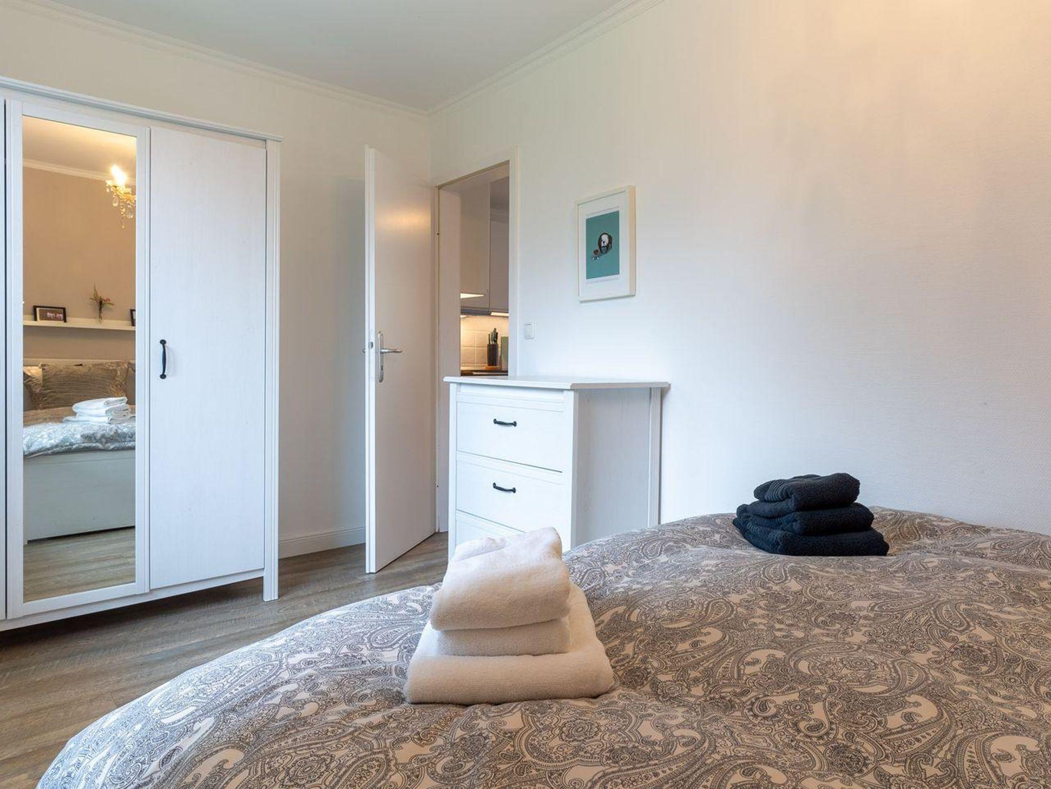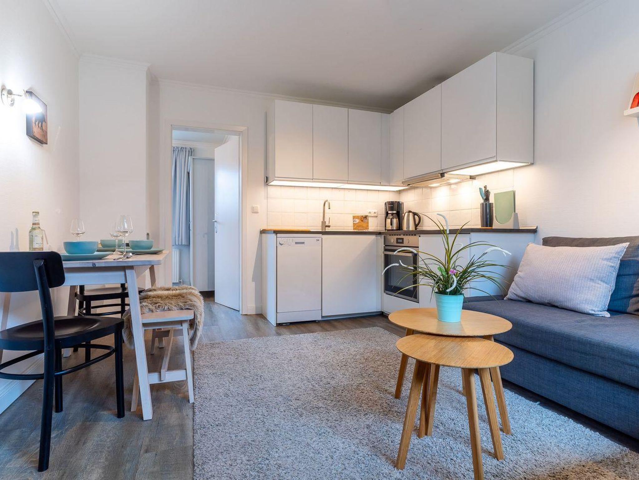Der Wohnraum ist der ideale Ort zum Entspannen und Verweilen. Hier finden Sie einen Esstisch, eine bequeme Couch, eine TV-Anrichte und eine gut ausgestattete Küchenzeile. Die Küche ist mit einer Spülmaschine, einem Backofen, einer Kaffeemaschine, einem Toaster und reichlich Geschirr ausgestattet, um Ihre Mahlzeiten bequem zuzubereiten.