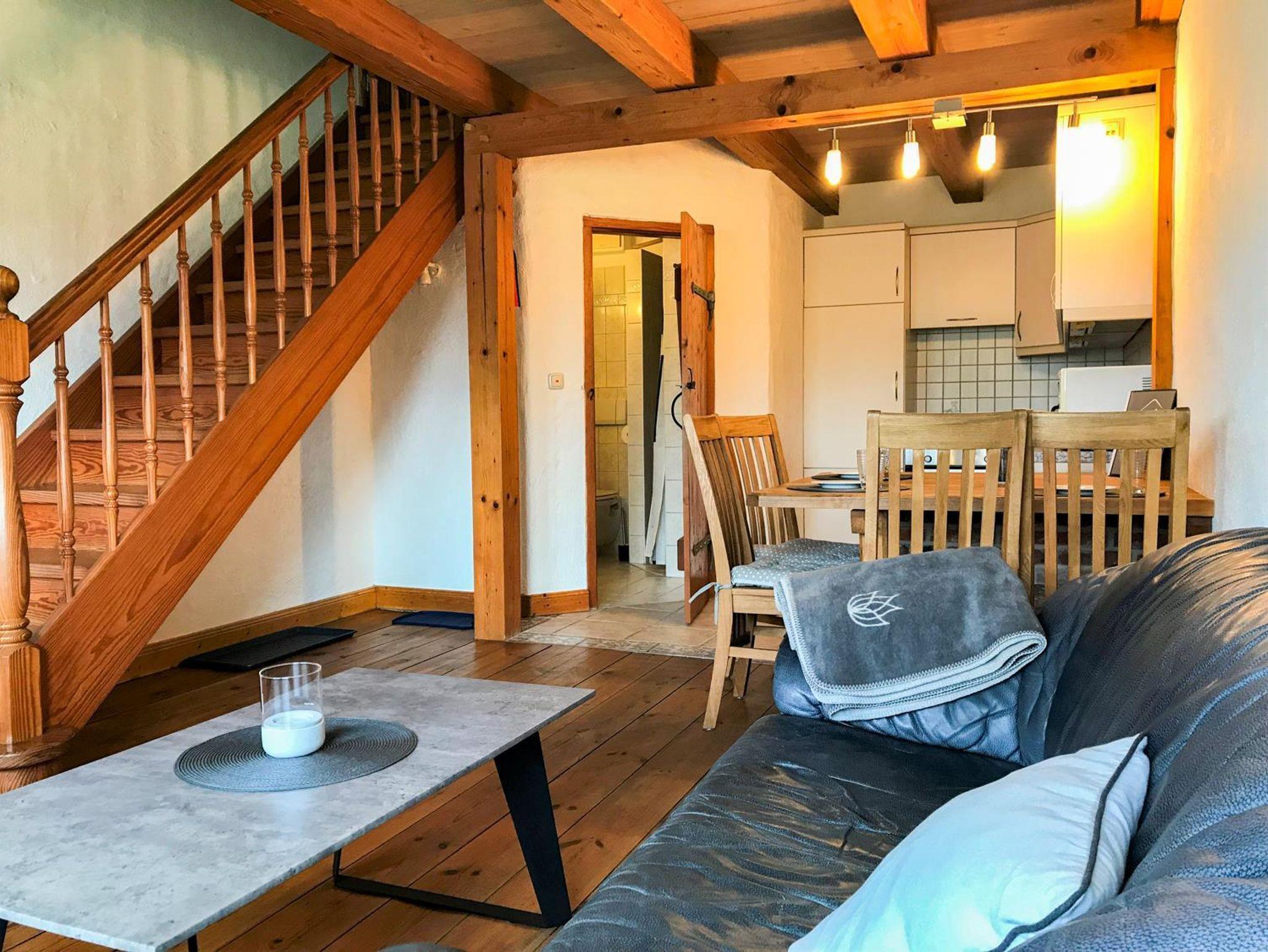 Die Ferienwohnung Seemöwe ist unsere größte Ferienwohnung im haubarg am meer. Der großzügige Wohnbereich mit offener Küche bietet viel Platz für einen entspannten Urlaub. Das Bad haben wir für euch in 2024 neu gestaltet. Über die massive Holztreppe gelangt man in das geräumige Schlafzimmer mit Doppelbett. Die Kinder schlafen getrennt von den Eltern in einem nachgebautem historischen Alkoven (entspricht einem Doppelbett).