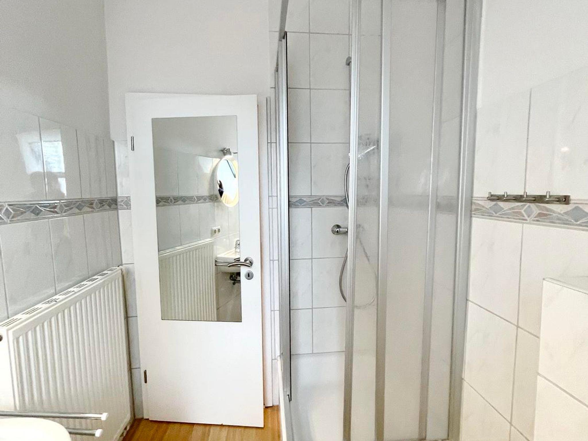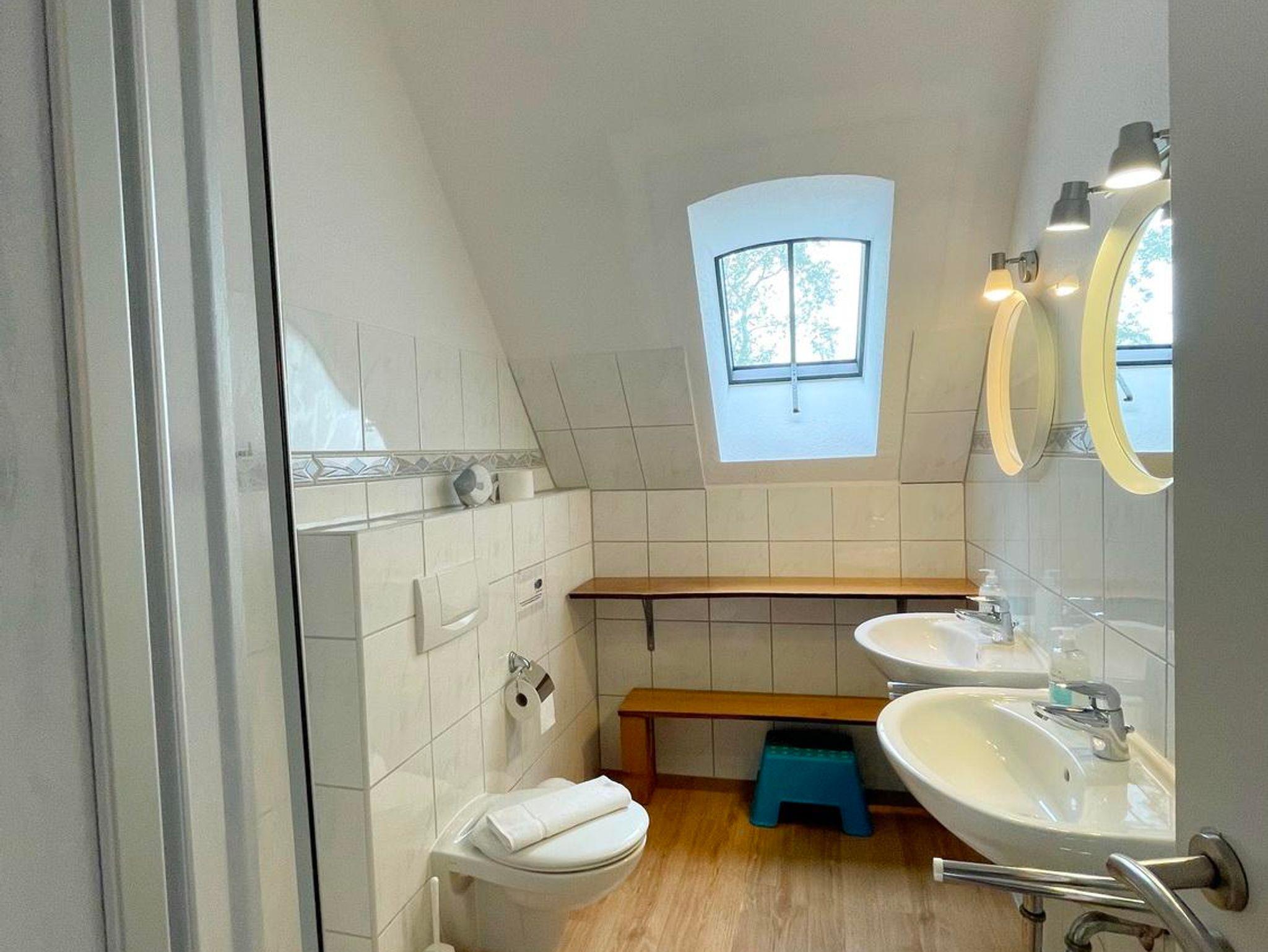 Kühlschrank, Herd mit Dunstabzugshaube), ein Duschbad mit Dusche und 2 Waschbecken.