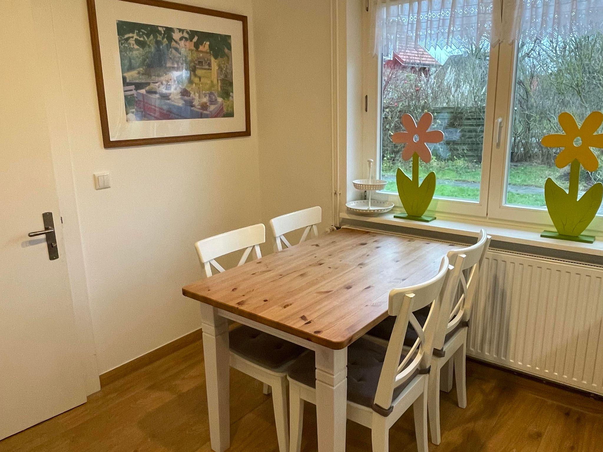 Das Haus ist im modernen Landhausstil eingerichtet, mit drei Schlafzimmern und zwei Bädern bietet das Haus Platz für bis zu sechs Personen. Die Küche ist komplett ausgestattet, in der Wohnstube gibt es einen schönen Kaminofen.