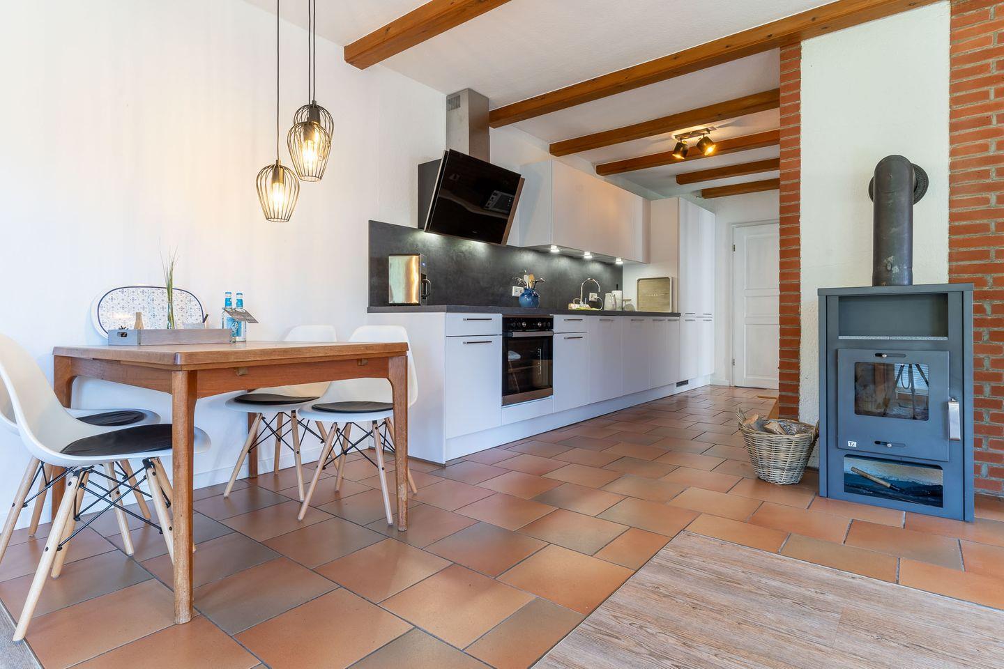 Gemütliche Erdgeschosswohnung mit Kamin und Terrasse in Vollerwiek, ideal für entspannte Tage an der Nordsee.