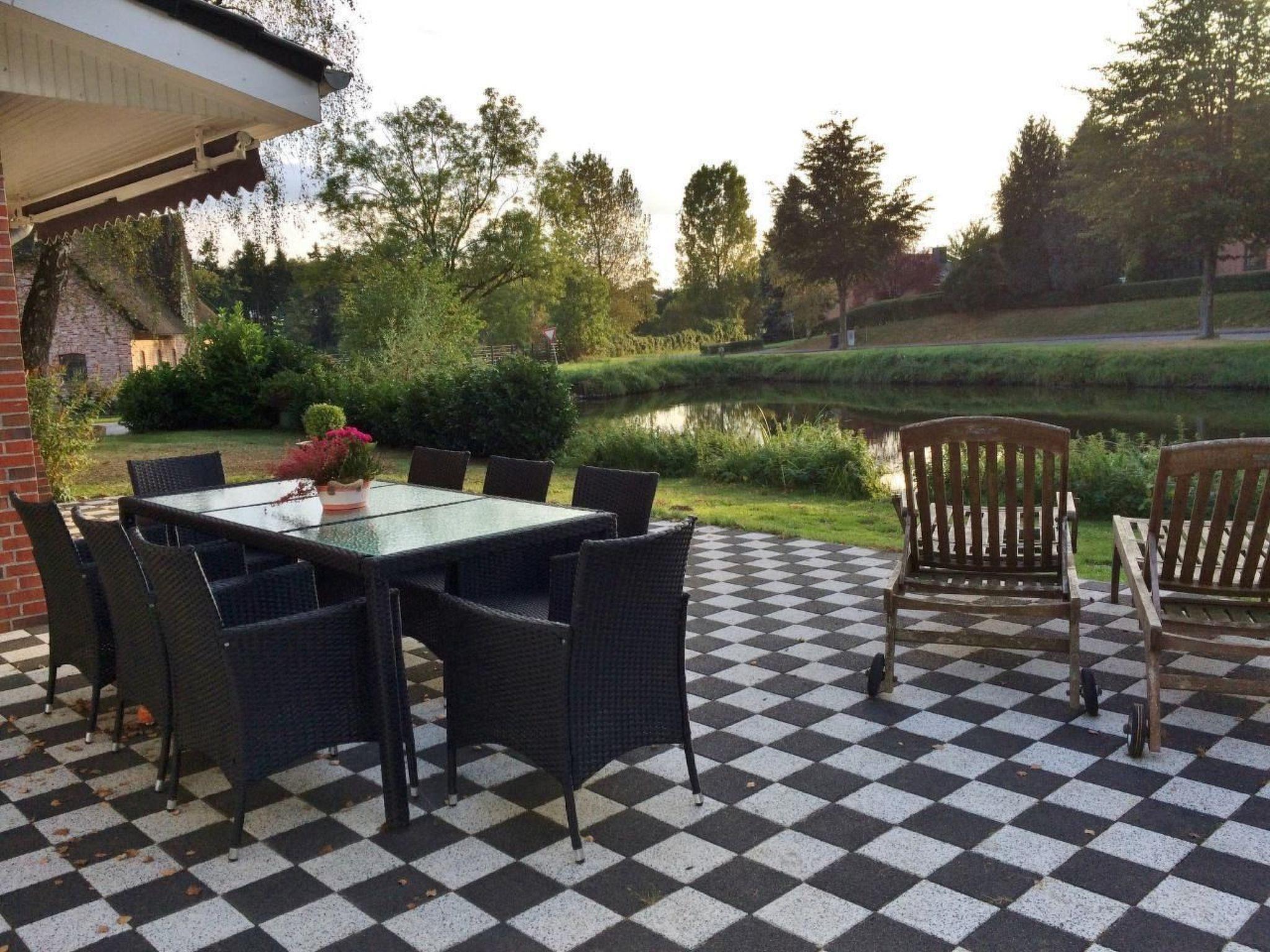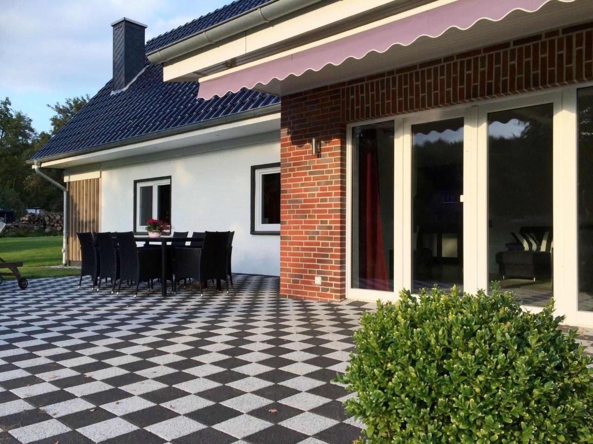 Im Außenbereich lädt die großzügige Terrasse mit modernen Gartenmöbeln und Markise zum Verweilen und Genießen der Natur ein. Der Garten, der das Haus umgibt, stellt einen herrlichen Spielplatz für Kinder dar, wobei direkte Aufsicht bei Nichtschwimmern notwendig ist. Zudem stehen ein Damen- und ein Herrenfahrrad für Erkundungen der Umgebung kostenlos zur Verfügung. In unmittelbarer Nähe ist ein großer Reiterhof mit Reetdach. Das Reiten dort ist leider nicht möglich.