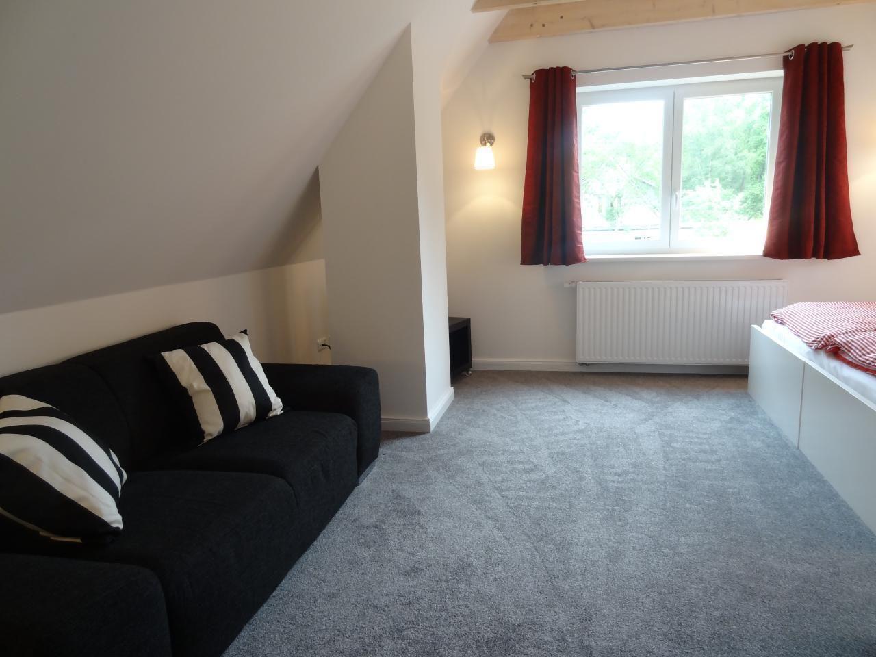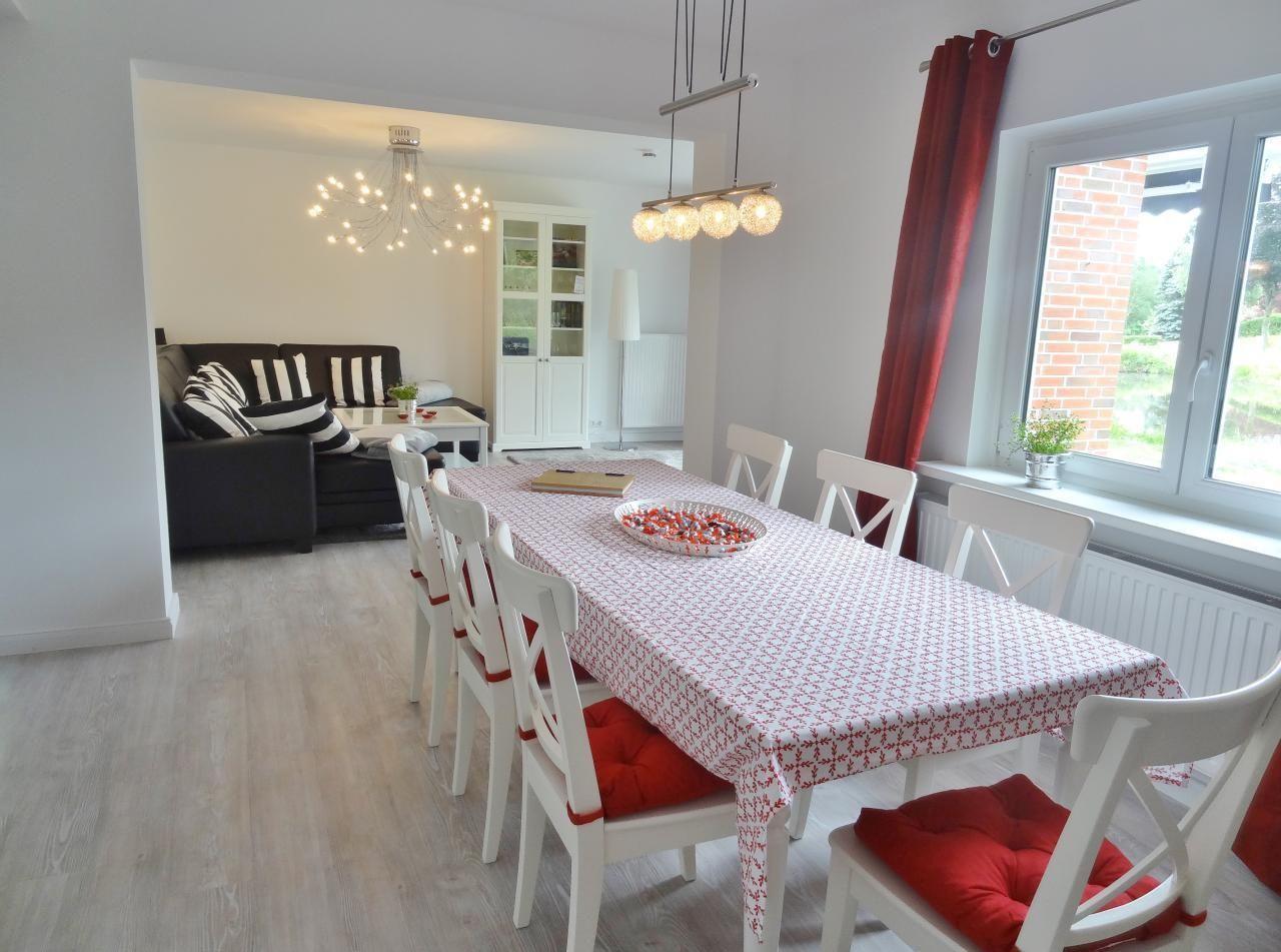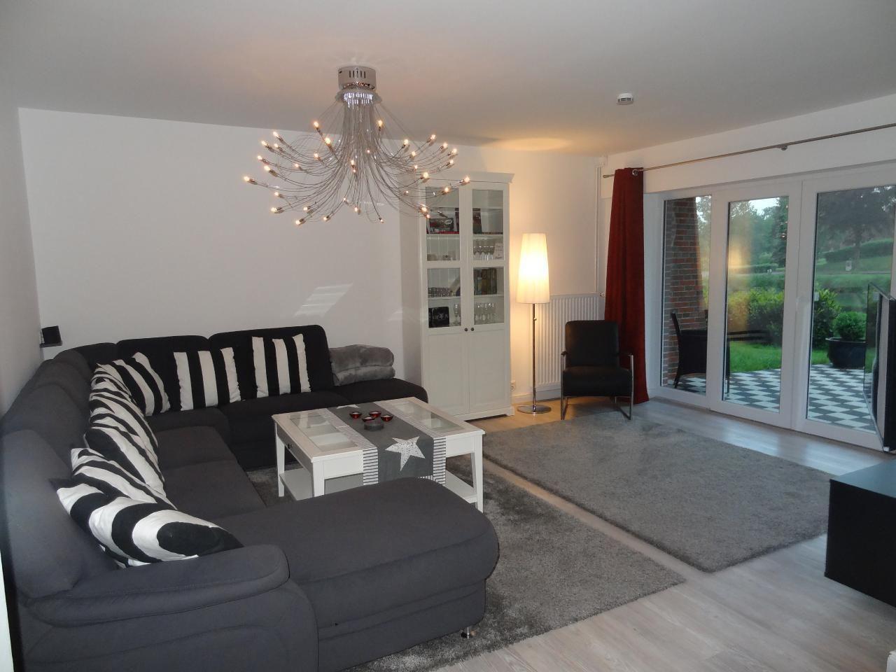 Im Außenbereich lädt die großzügige Terrasse mit modernen Gartenmöbeln und Markise zum Verweilen und Genießen der Natur ein. Der Garten, der das Haus umgibt, stellt einen herrlichen Spielplatz für Kinder dar, wobei direkte Aufsicht bei Nichtschwimmern notwendig ist. Zudem stehen ein Damen- und ein Herrenfahrrad für Erkundungen der Umgebung kostenlos zur Verfügung. In unmittelbarer Nähe ist ein großer Reiterhof mit Reetdach. Das Reiten dort ist leider nicht möglich.