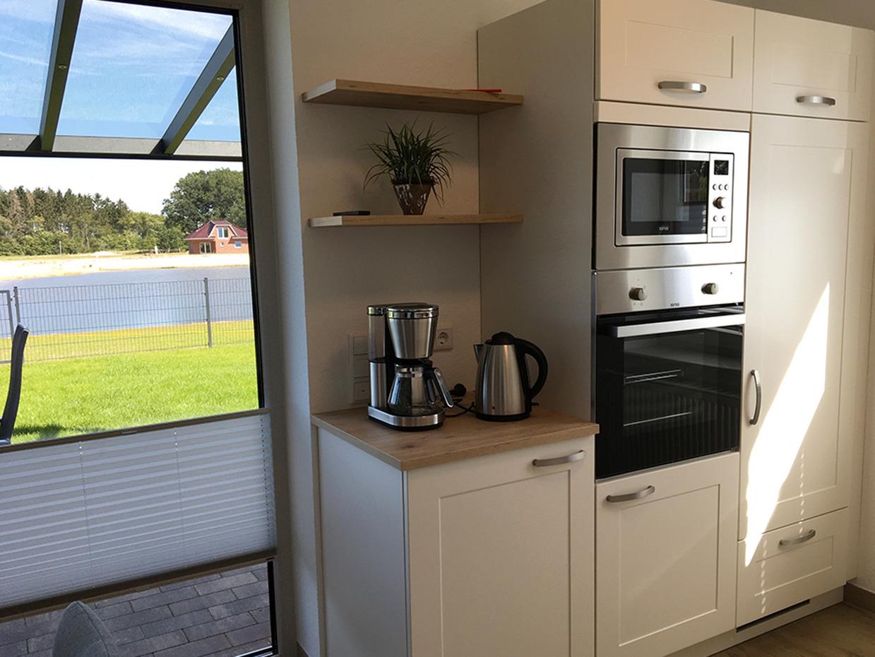 Modernes Ferienhaus mit Seeblick, Infrarot-Sauna und Strandkorb in Walchum.