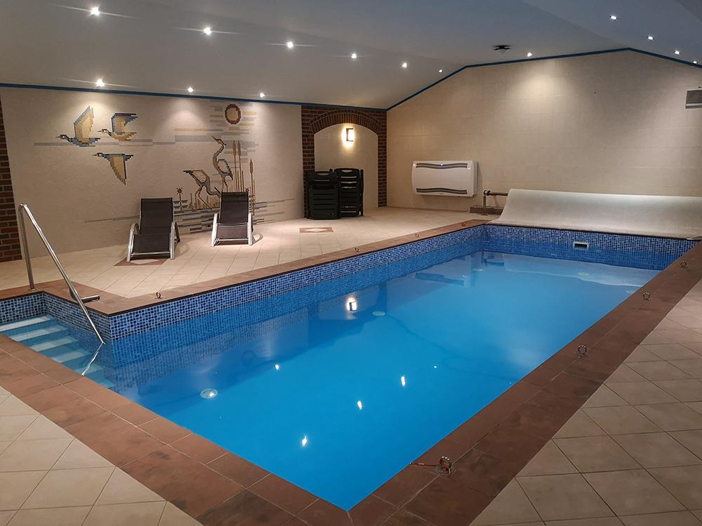 Im Seepark ist fußläufig auch ein kleines warmes Indoor-Schwimmbad anzumieten (ca. 9 x 4 m) plus eine finnische Sauna. Dies ist auch noch buchbar vor Ort. Im Ferienhaus hier selbst befindet sich kein Pool.