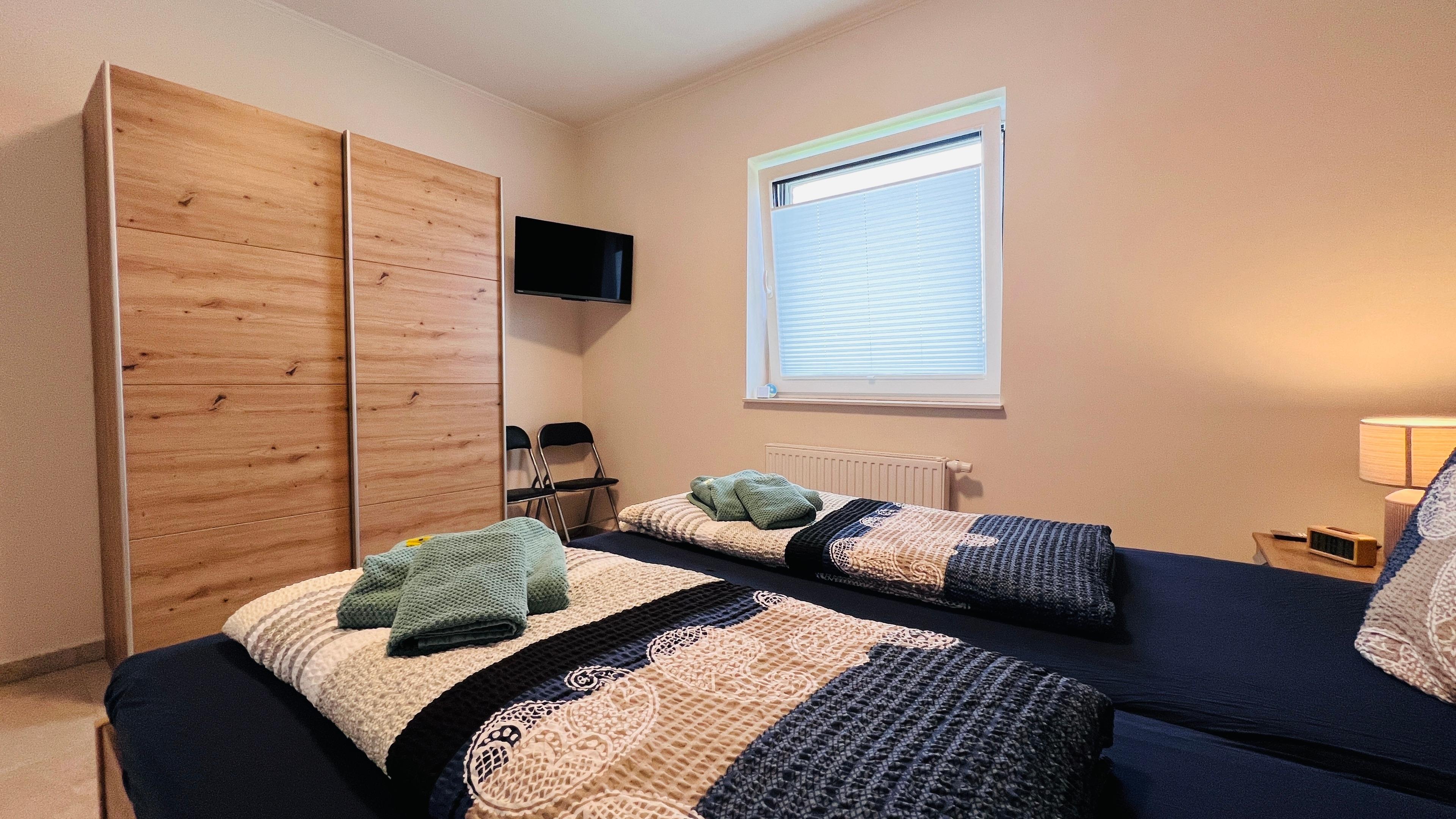 Zwei Schlafzimmern befinden sich im Objekt. Beide Schlafzimmer haben ein Doppelbett (180 x 200 cm), einen Kleiderschrank.