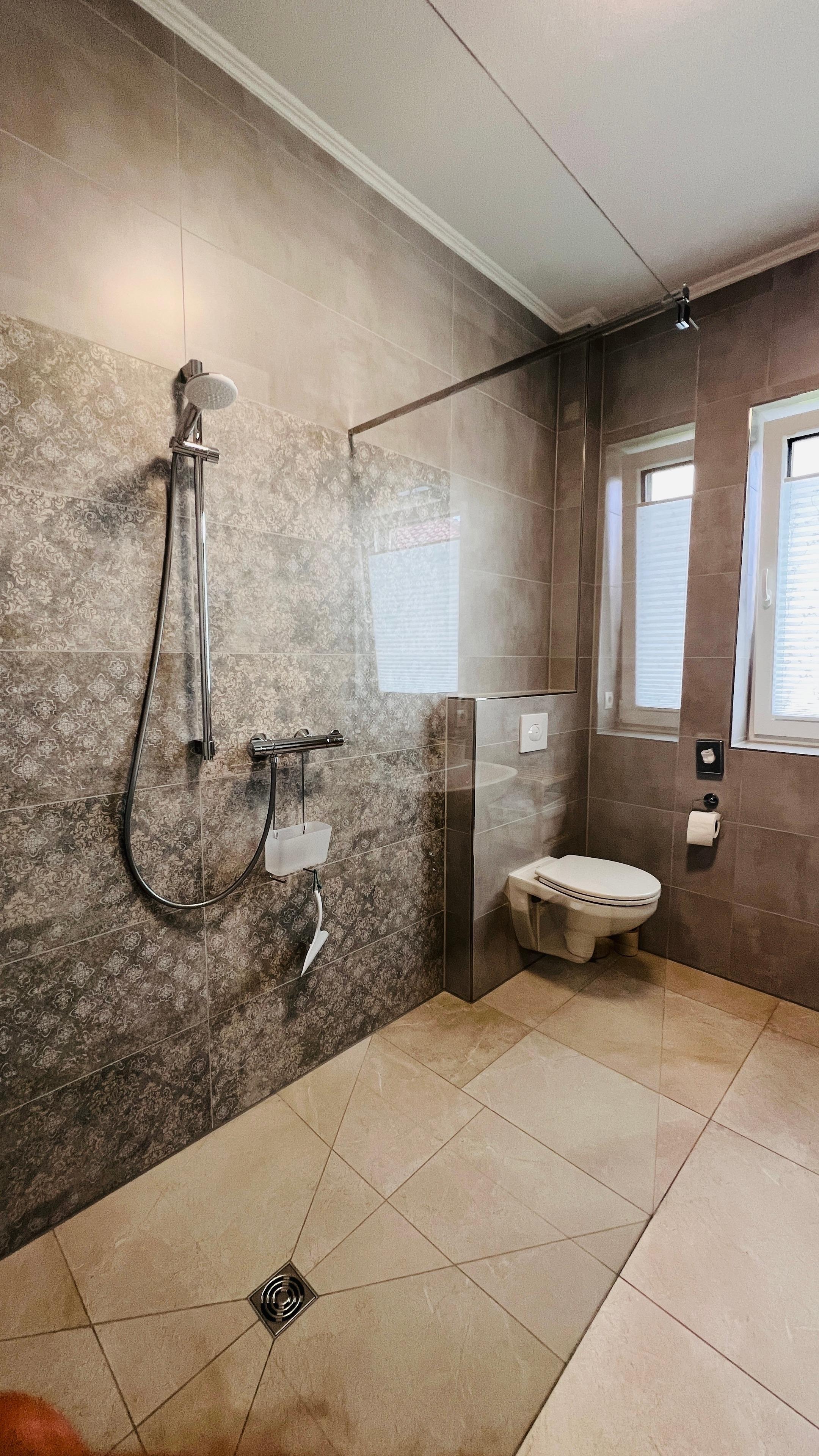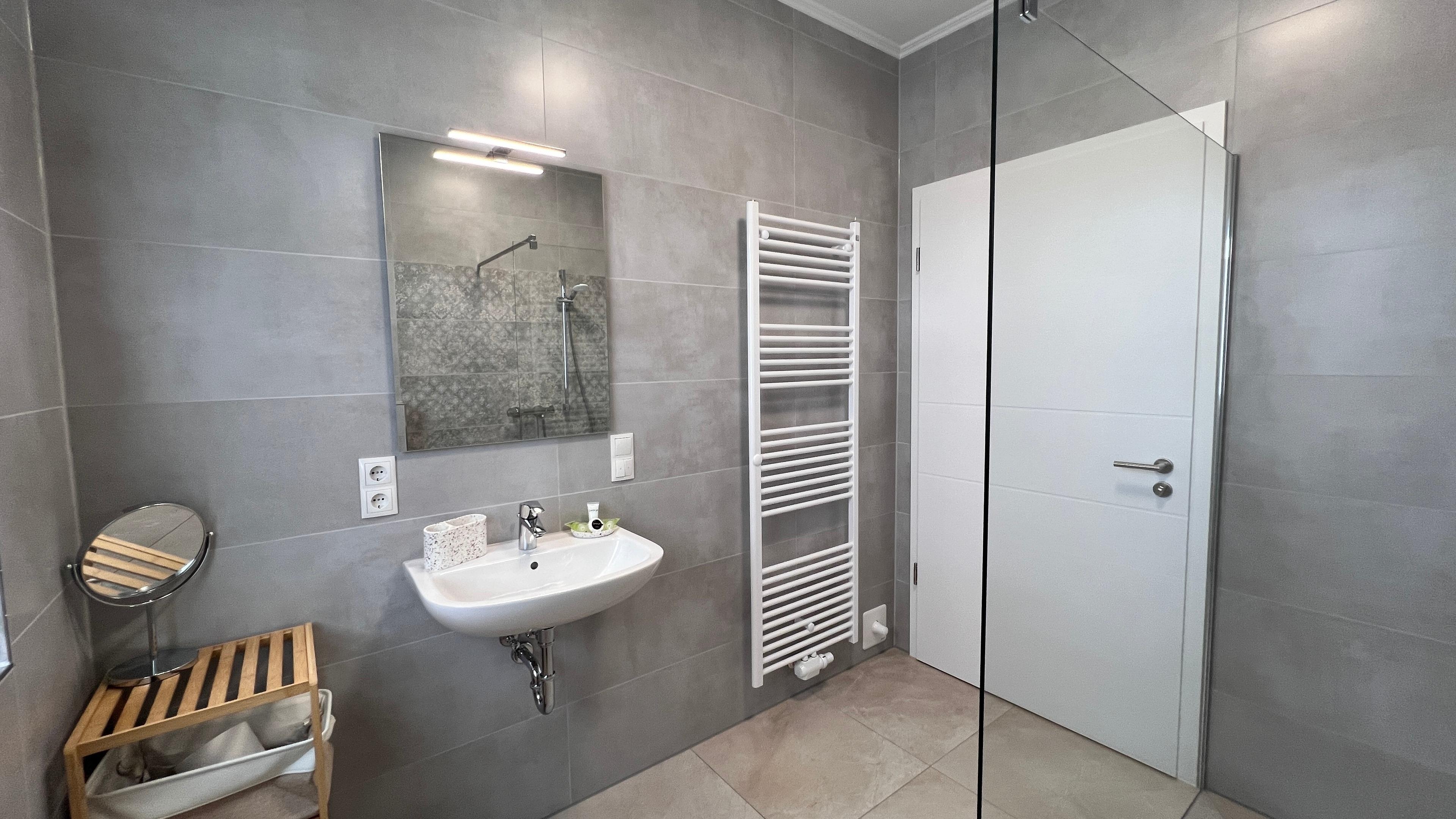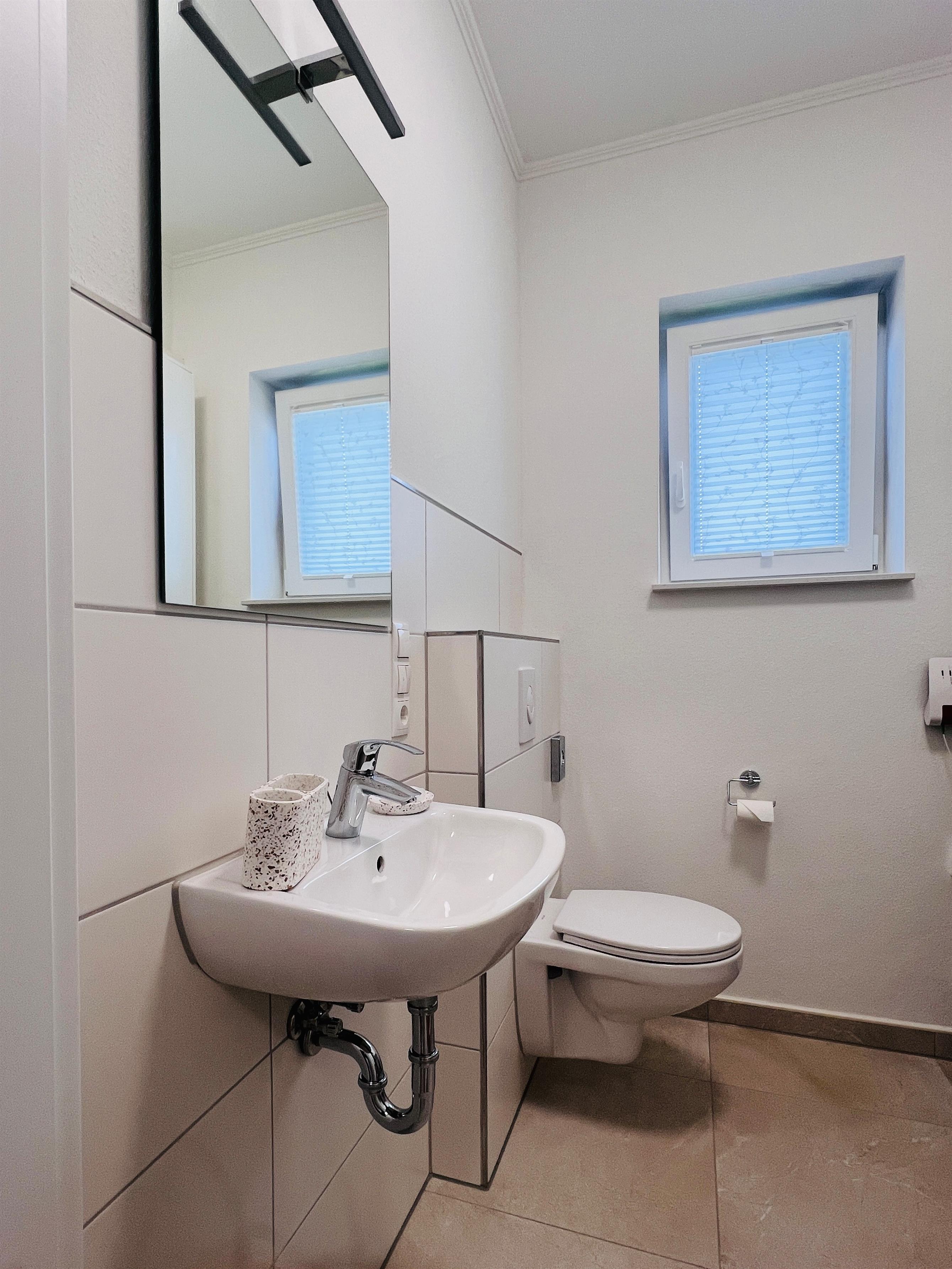 Im Haus befindet sich ein Badezimmer mit Dusche und zusätzlich ein Gäste-WC.