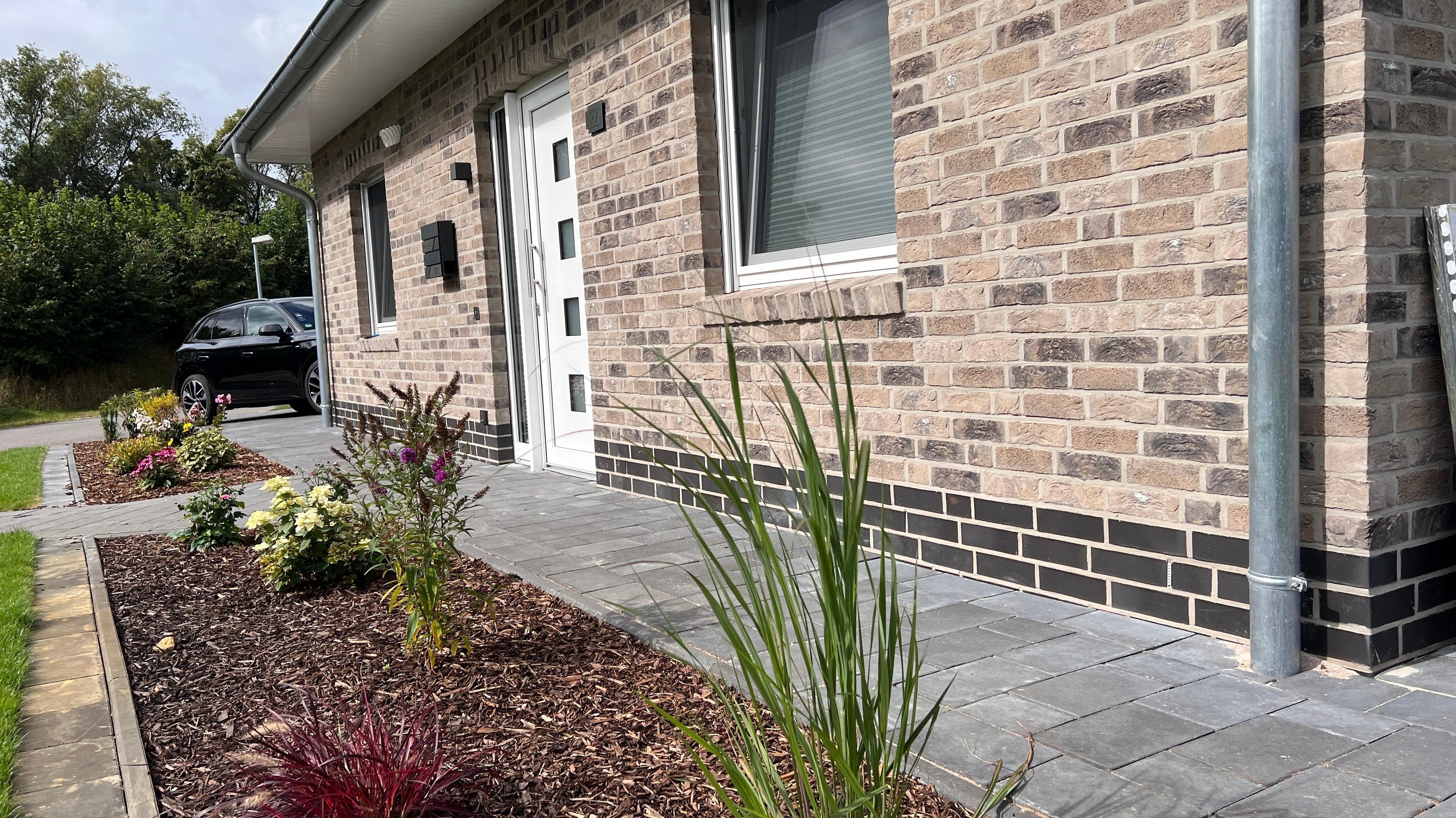 Zu dem Ferienhaus gehört ein eigener Garten sowie eine Terrasse.