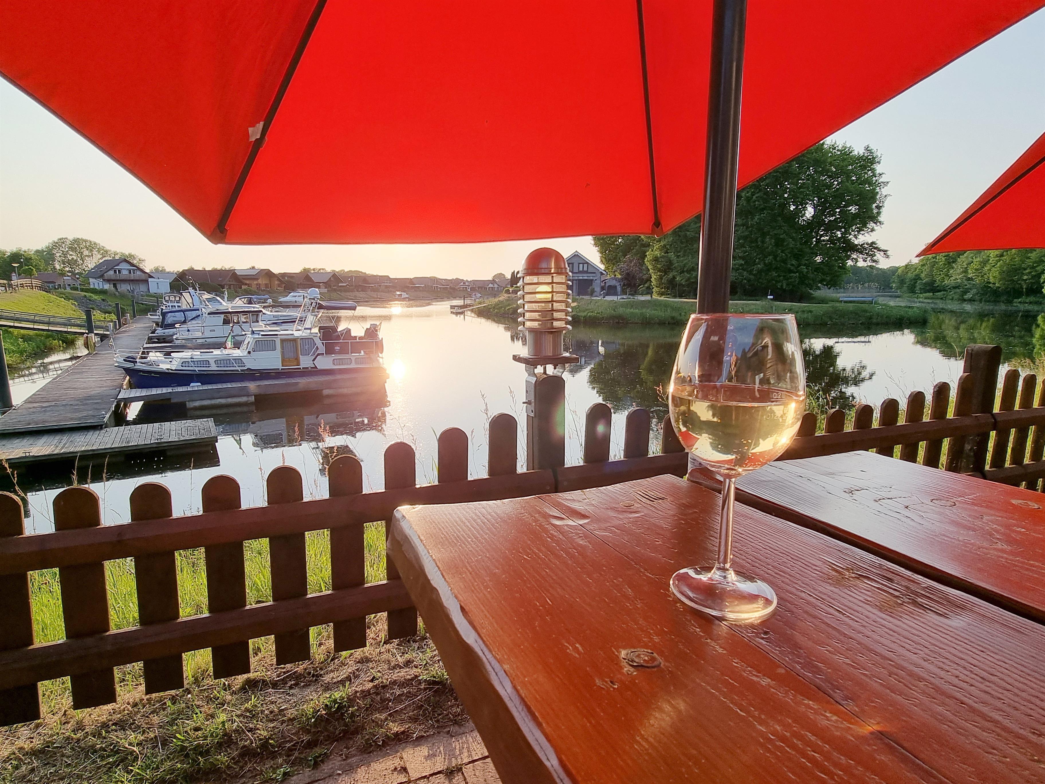 Etwa 3 Fußminuten entfernt befindet sich das HafenCafe, wo Sie auch beim Schlemmen und mit Aperol Spritz sowie ähnlichem unmittelbar am Wasser sitzen können, gaaaanz entspannt auf das Hafenbecken sowie die Ems schauen können. Angeboten werden einfache Gerichte sowie auch Kaffee und Kuchen. Von etwa Ostern bis September ist das HafenCafe an den Wochenenden i.d.R. geöffnet.