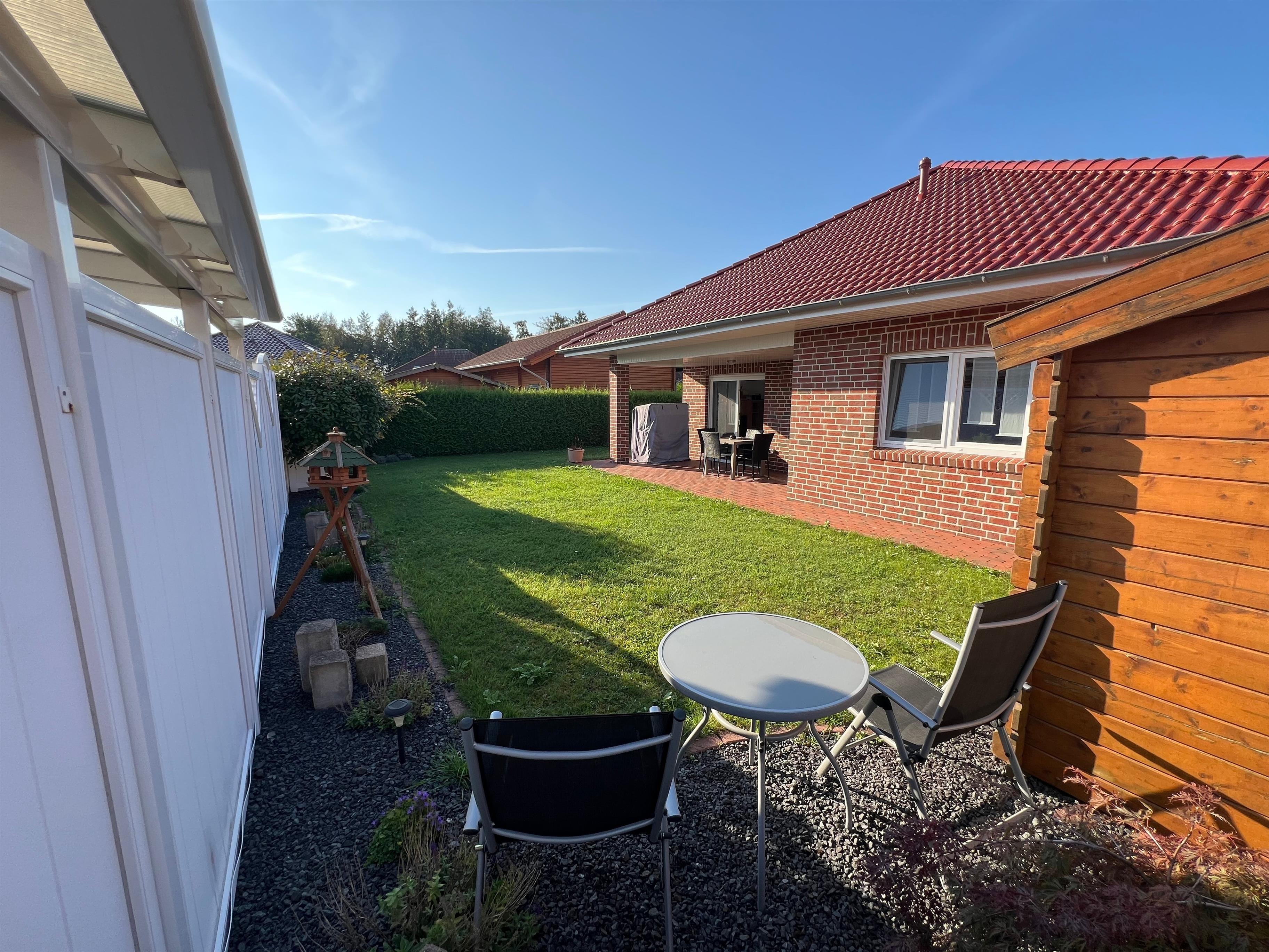 Ferienhaus im Emsland mit eigenem Garten, Seezugang und moderner Ausstattung für erholsame Tage.